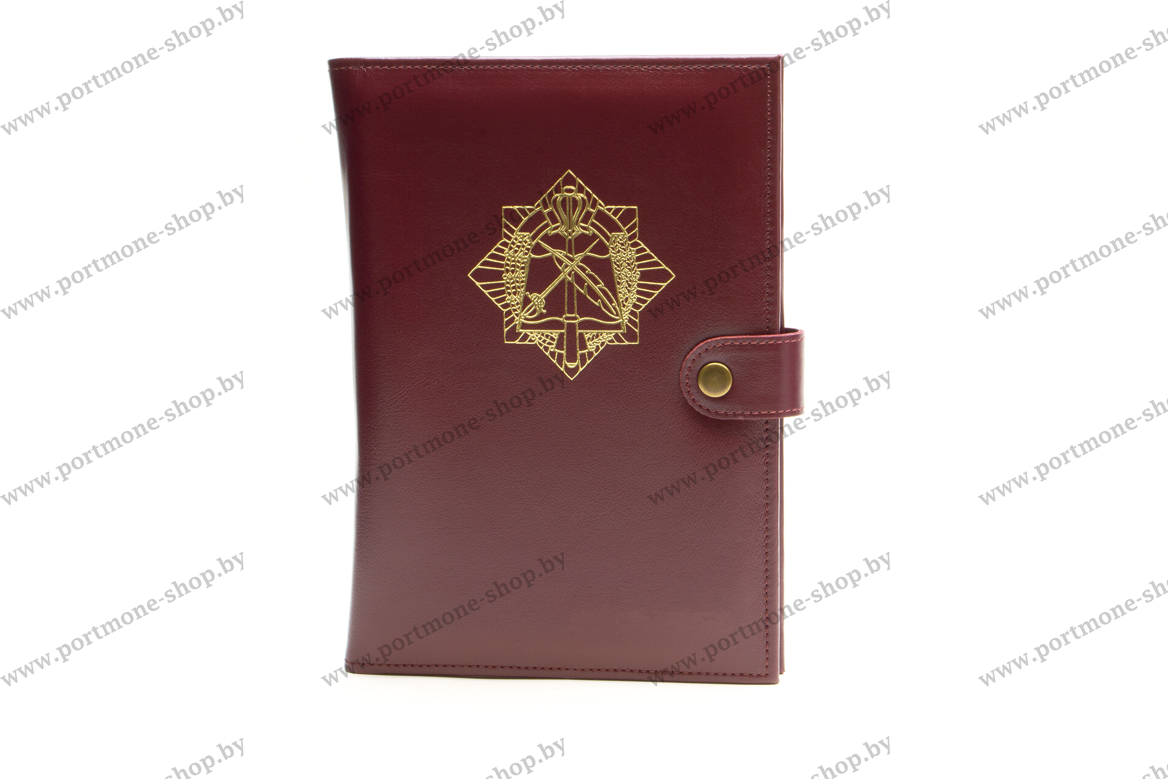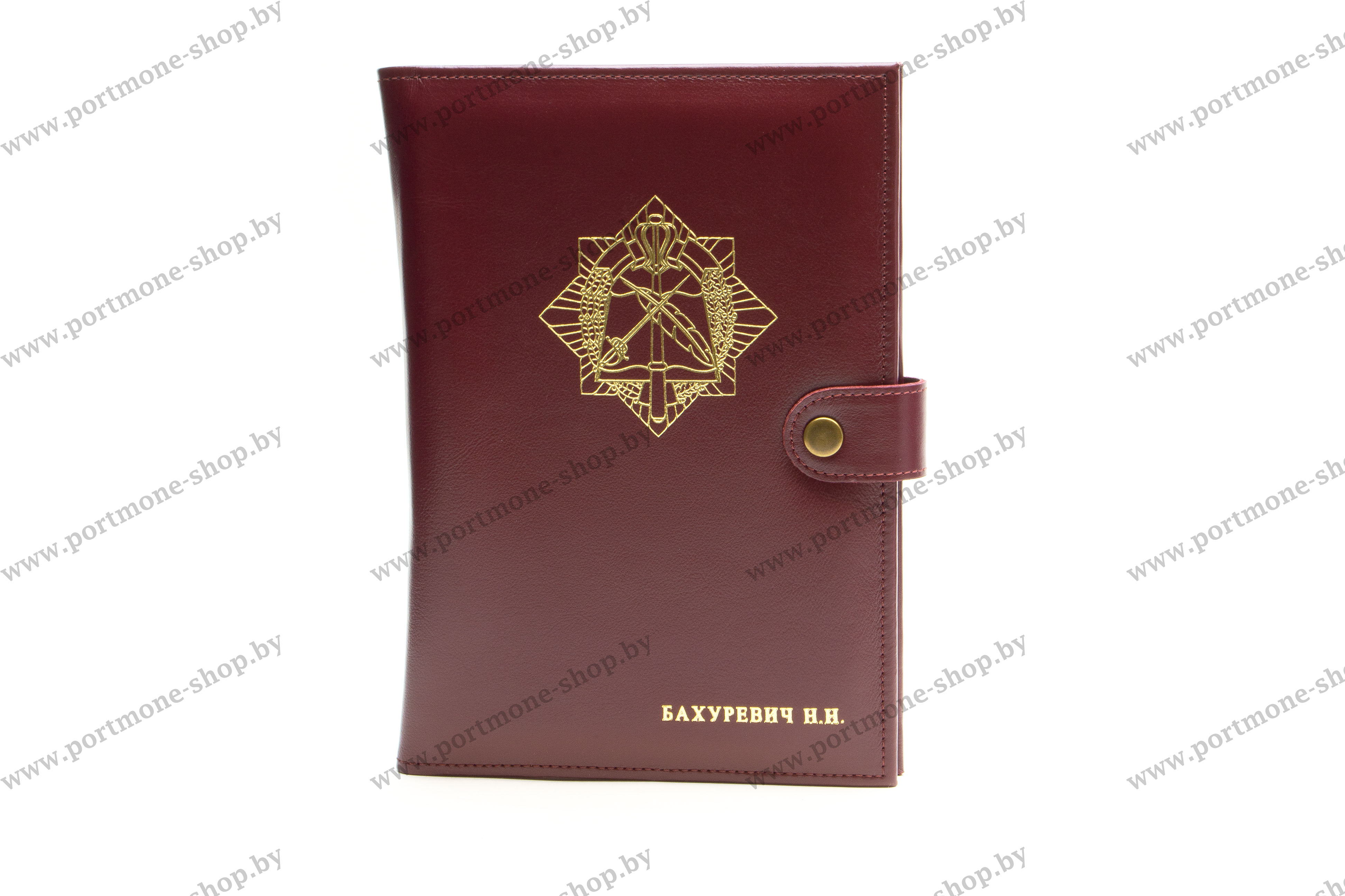 Обложка для ежедневника А5 с тиснением эмблемы Штаба МВД Республики Беларусь из натуральной кожи. Обложка очень удобна большим количеством карманов на форзаце, держателем ручки и застежкой-кнопкой, надёжно закрывающей ежедневник. Может быть выполнена в другом цвете. Варианты тиснения: золото, серебро, бесцветное. Прошивка в тон кожи или светлой нитью. Под заказ возможна установка застёжки с магнитом (+15р). За доп. плату возможно нанесение ФИО, звания и пр. При заказе просьба выбрать модификацию (с простыми карманами или карманами под визитки), а в графе "комментарии" указывать цвет, нанесение доп. тиснения и пр.