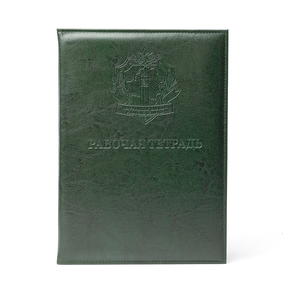 Обложка на рабочую тетрадь с эмблемой Пограничной службы Республики Беларусь формата А4. Под заказ возможна установка застёжки с кнопкой (+5р) или магнитом (+15р). За доп. плату возможно нанесение ФИО, звания и пр. При заказе просьба выбрать модификацию (с простыми карманами или карманами под визитки), а в графе "комментарии" указывать цвет, нанесение доп. тиснения и пр.