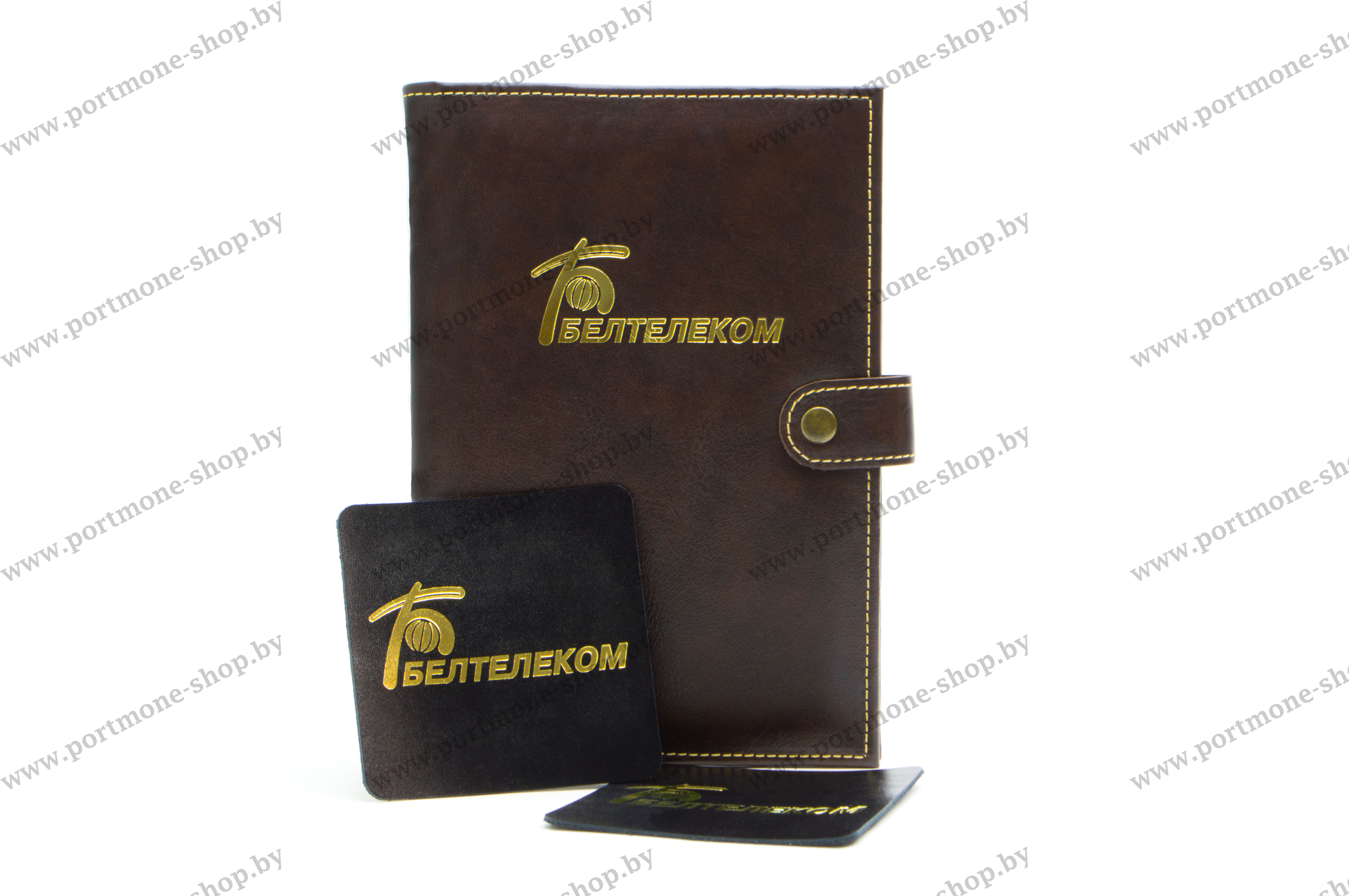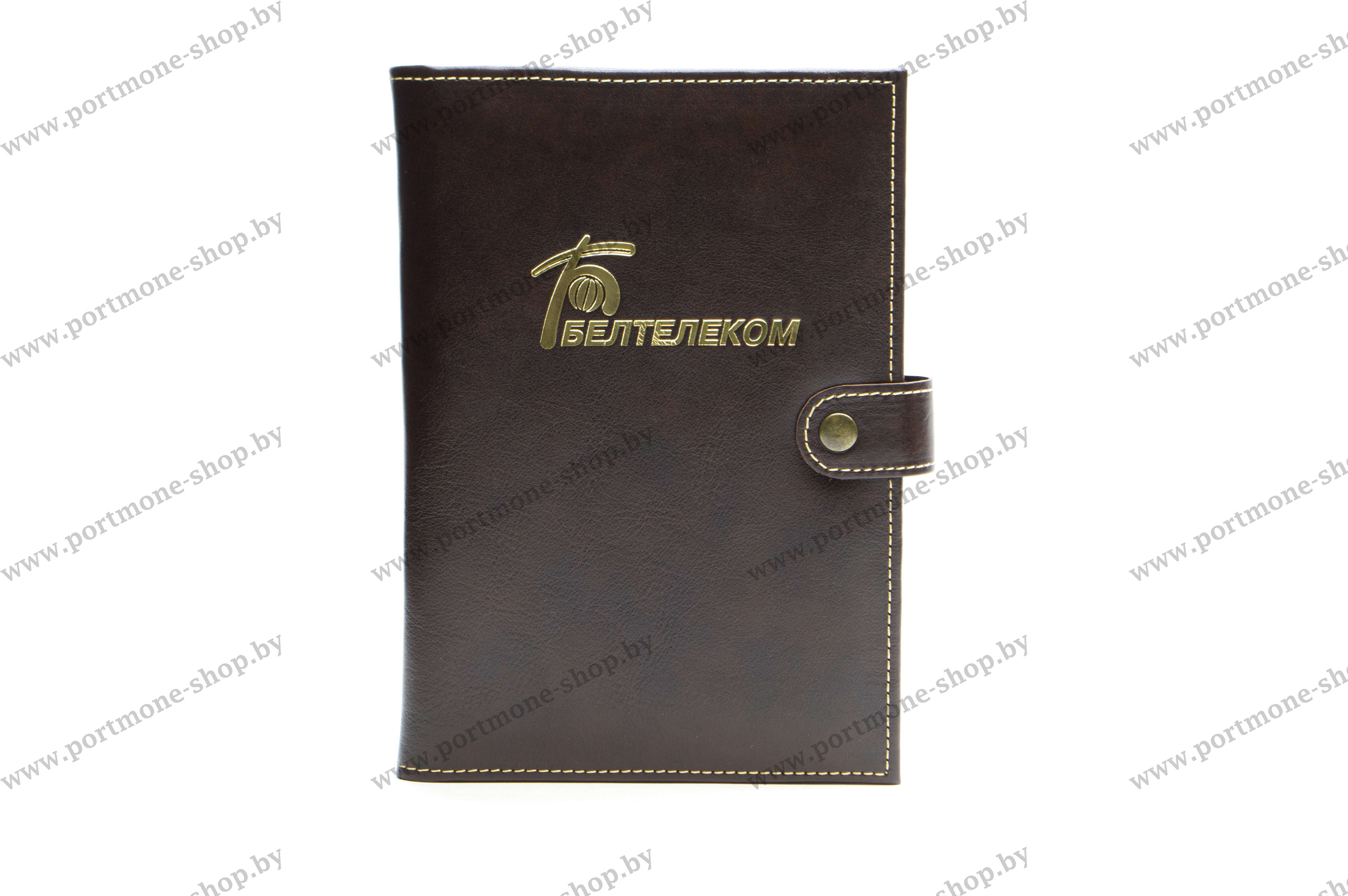 Обложка для ежедневника из натуральной кожи с контрастной прошивкой для РУП "Белтелеком". Цена указана за обложку с простыми карманами. Различный цвет кожи. Варианты тиснения: золото, серебро, бесцветное. Прошивка в тон кожи или светлой нитью. Под заказ возможна установка застёжки с магнитом (+15р). За доп. плату возможно нанесение ФИО, звания и пр. При заказе просьба выбрать модификацию (с простыми карманами или карманами под визитки), а в графе "комментарии" указывать цвет, нанесение доп. тиснения и пр.