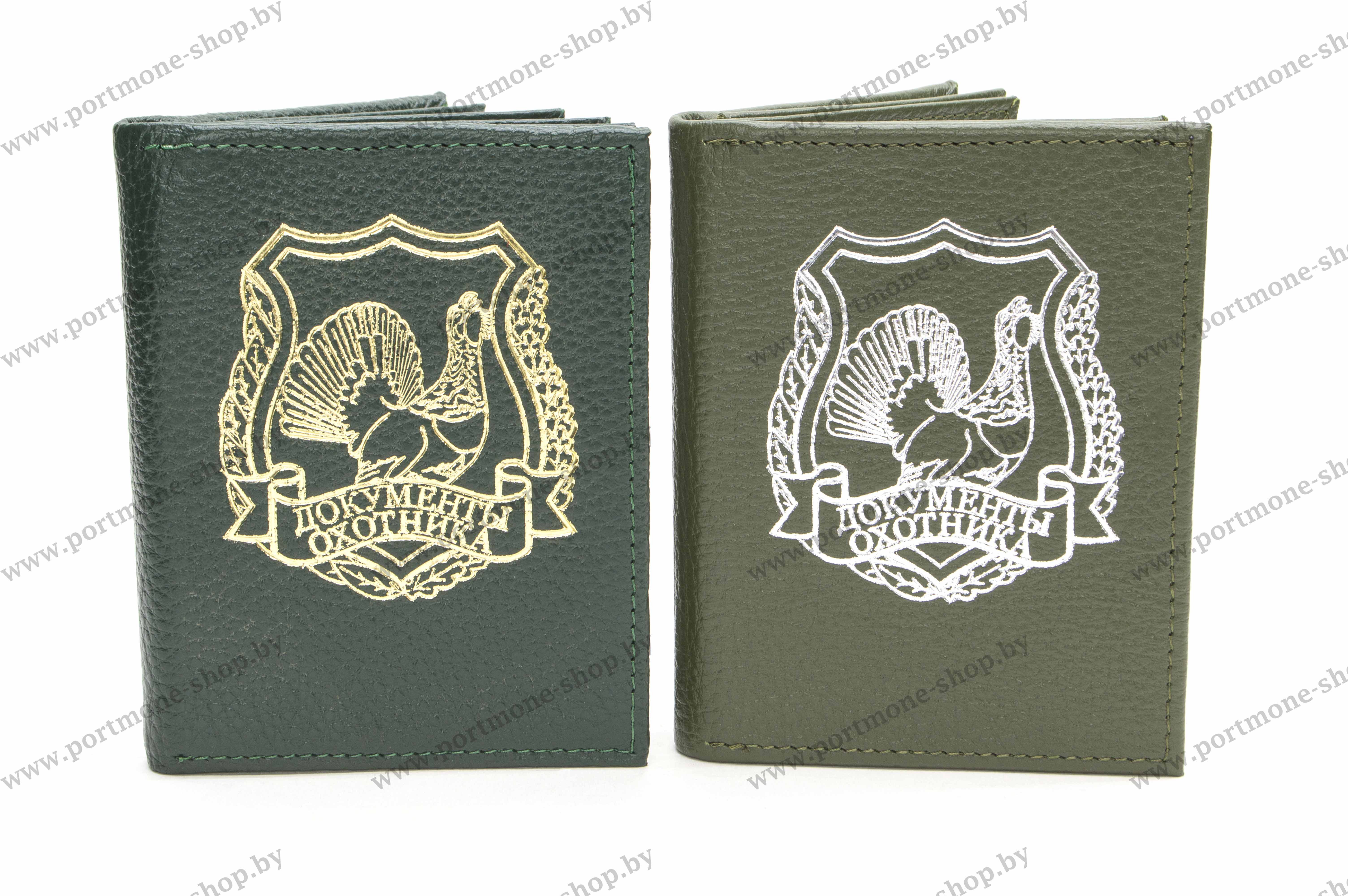 Обложка для охотников специально разработана под необходимые документы и их формат. Данная модель включает в себя один откидной карман для охотничьего билета РФ (или разрешения на право хранения оружия РБ), под ним так же удобно располагаются два дополнительных прозрачных кармашка. По-середине два кармана под карточки РОХа РФ (или государственное удостоверение на право охоты и карточку к нему РБ). Дополнительно возможно приобретение съемного модуля для регистрационной карточки на собаку или иных документов.