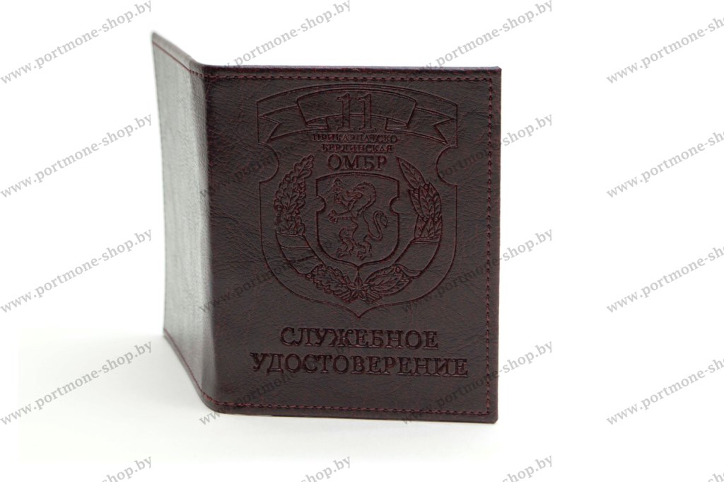 Обложка для служебного удостоверения из искусственной кожи на твердой основе с эмблемой 11 Прикарпатско-Берлинской ОМБР Республики Беларусь