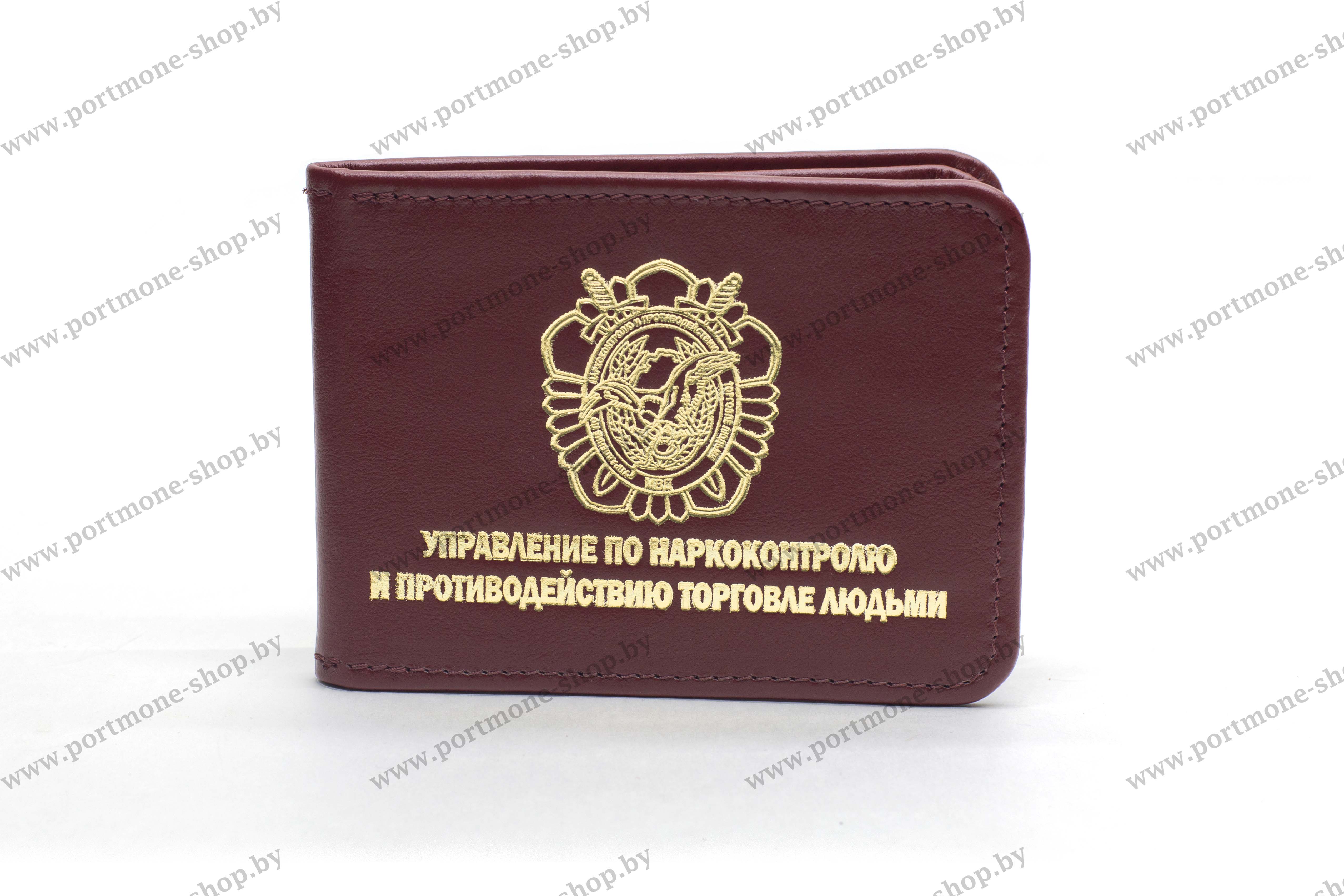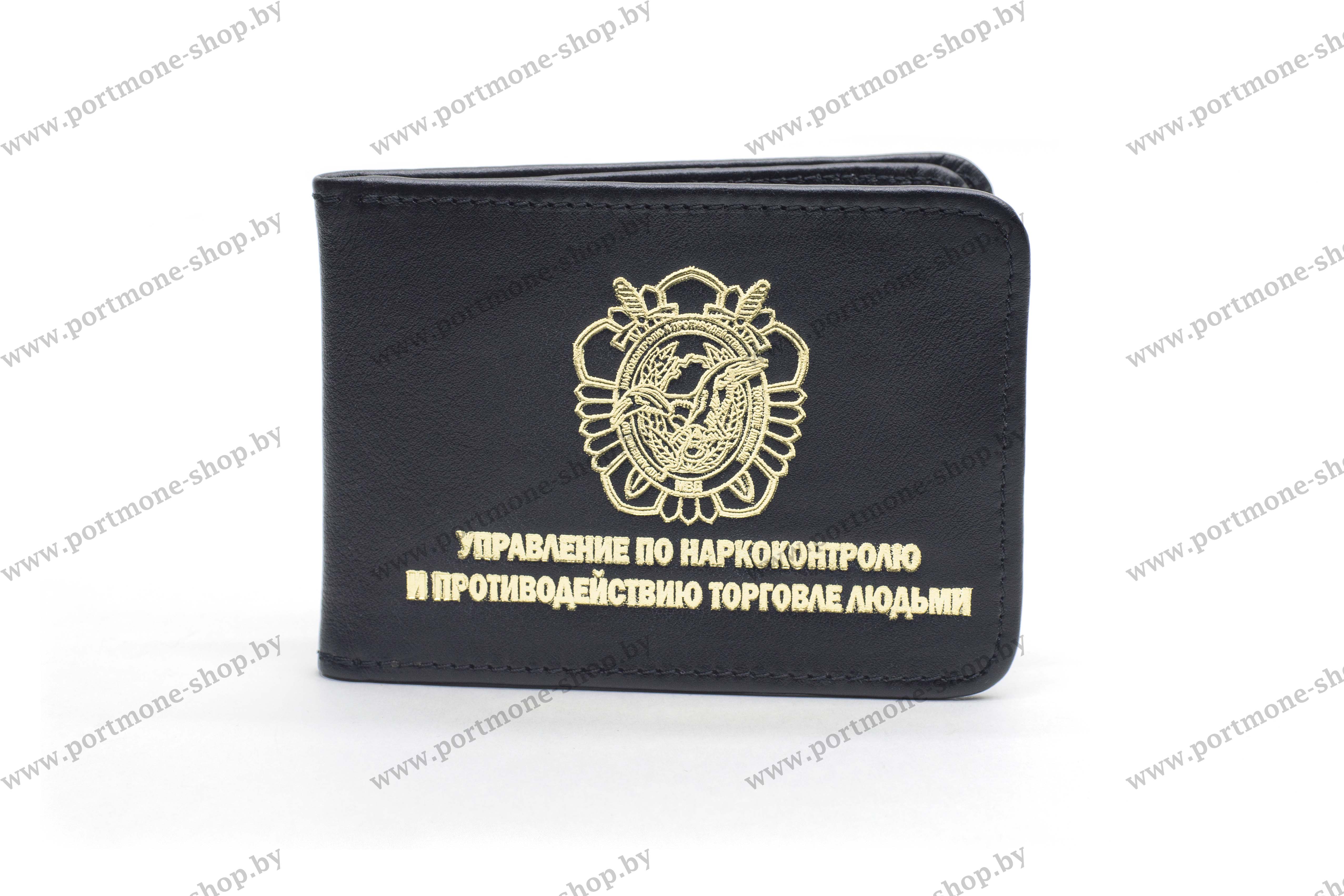 На лицевой стороне нанесено золотое тиснение: эмблема УНиПТЛ и надпись "Управление по незаконному обороту наркотиков и противодействию торговле людьми".
