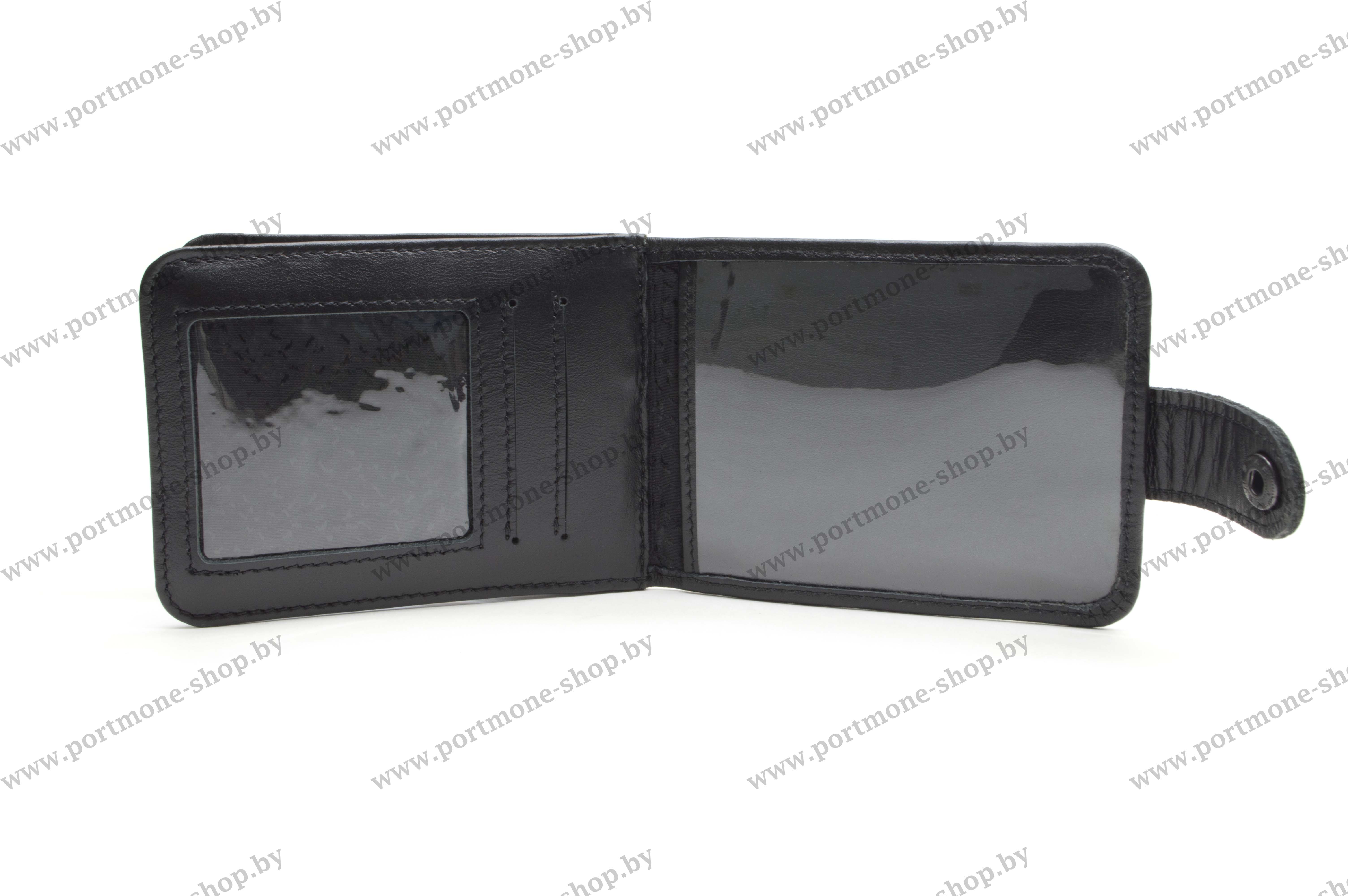 Первый разворот предназначен для служебного удостоверения МВД нового образца (75*105). Так же в указанный отсек помещаются удостоверение старого образца (ламинированная карточка 75*105мм) либо пенсионное удостоверение МВД Республики Беларусь (70*105). Под удостоверением расположен потайной карман для пропуска/банковской карточки. На центральной странице предусмотрены два слота для карточек (водительского удостоверения, пропуска или визиток). На последней странице имеются два кармана для иных документов. Один из прозрачного полимера, второй - из кожи. В них удобно хранить карточку-заместитель на оружие и радиостанцию, ветеранское удостоверение, иные документы.