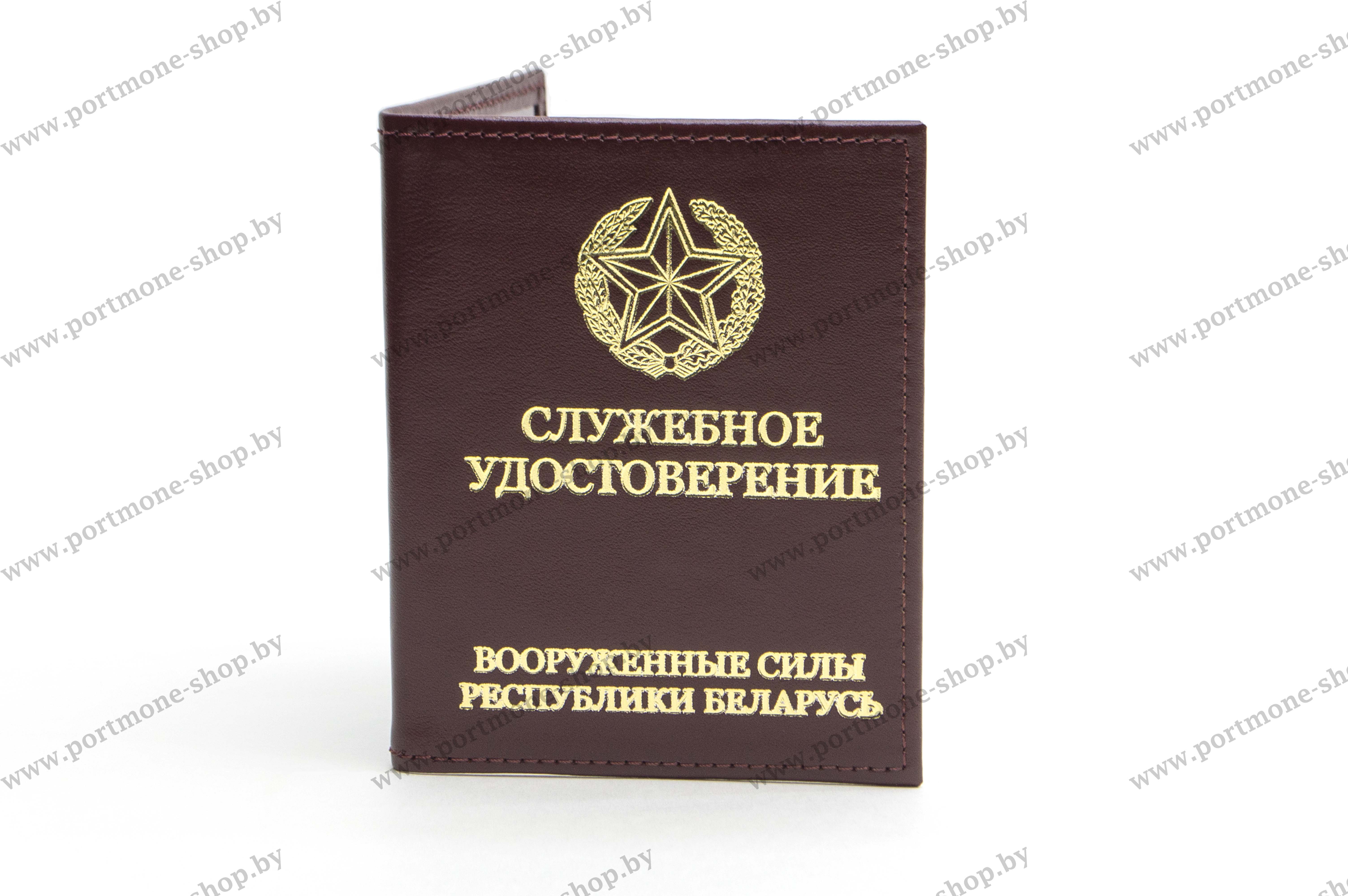 Обложка из натуральной кожи для служебного удостоверения служащих Вооруженных сил Республики Беларусь (офицеров и прапорщиков). Изготовлена под размер удостоверения военнослужащего – вертикальной книжки 100*78мм. (в сложенном состоянии).