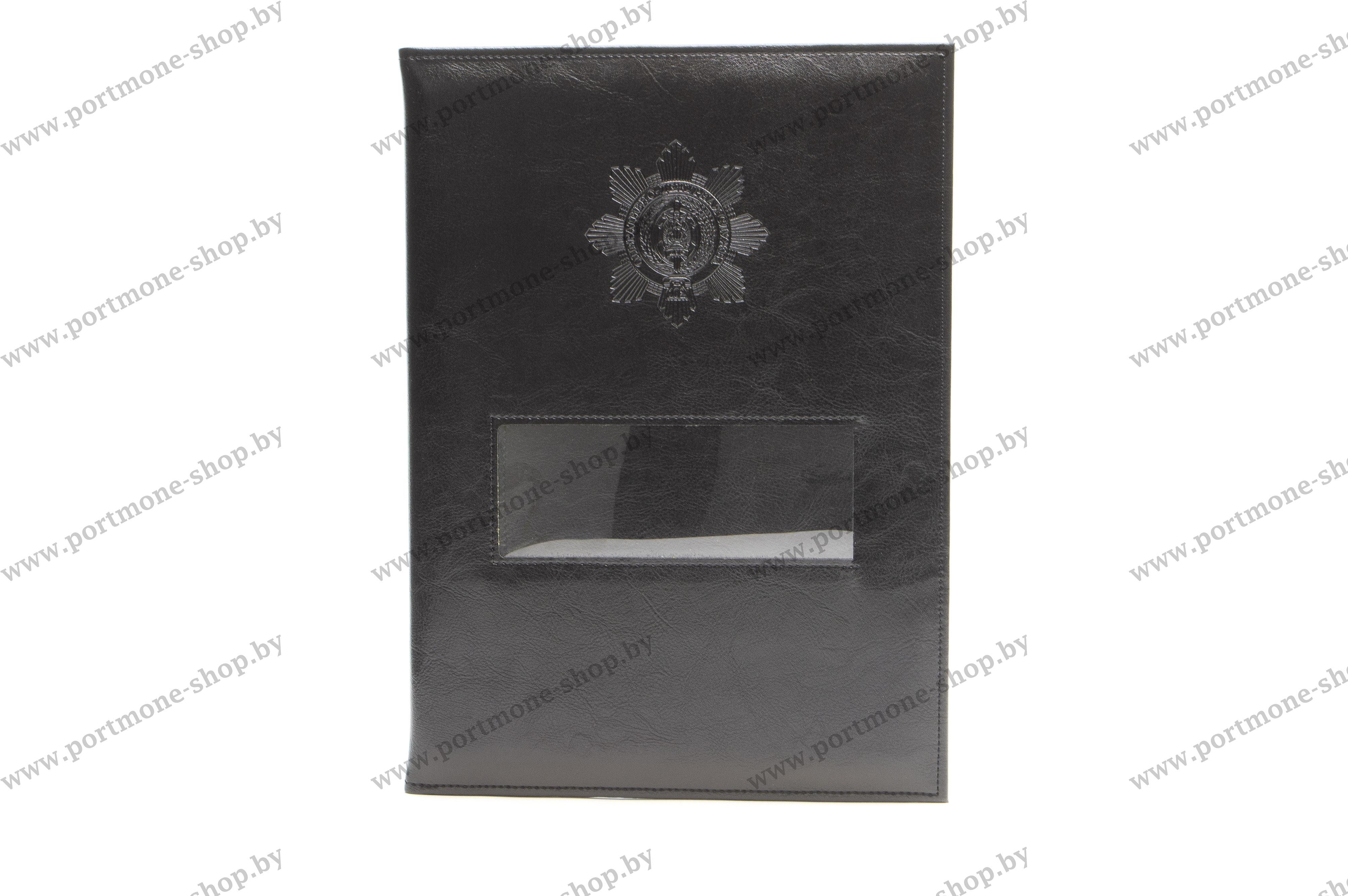 Обложка для журнала с прозрачным окошком для вставки информационного листка и тисненой эмблемой Оперативно-дежурной службы МВД. Выполнена из искусственной кожи.