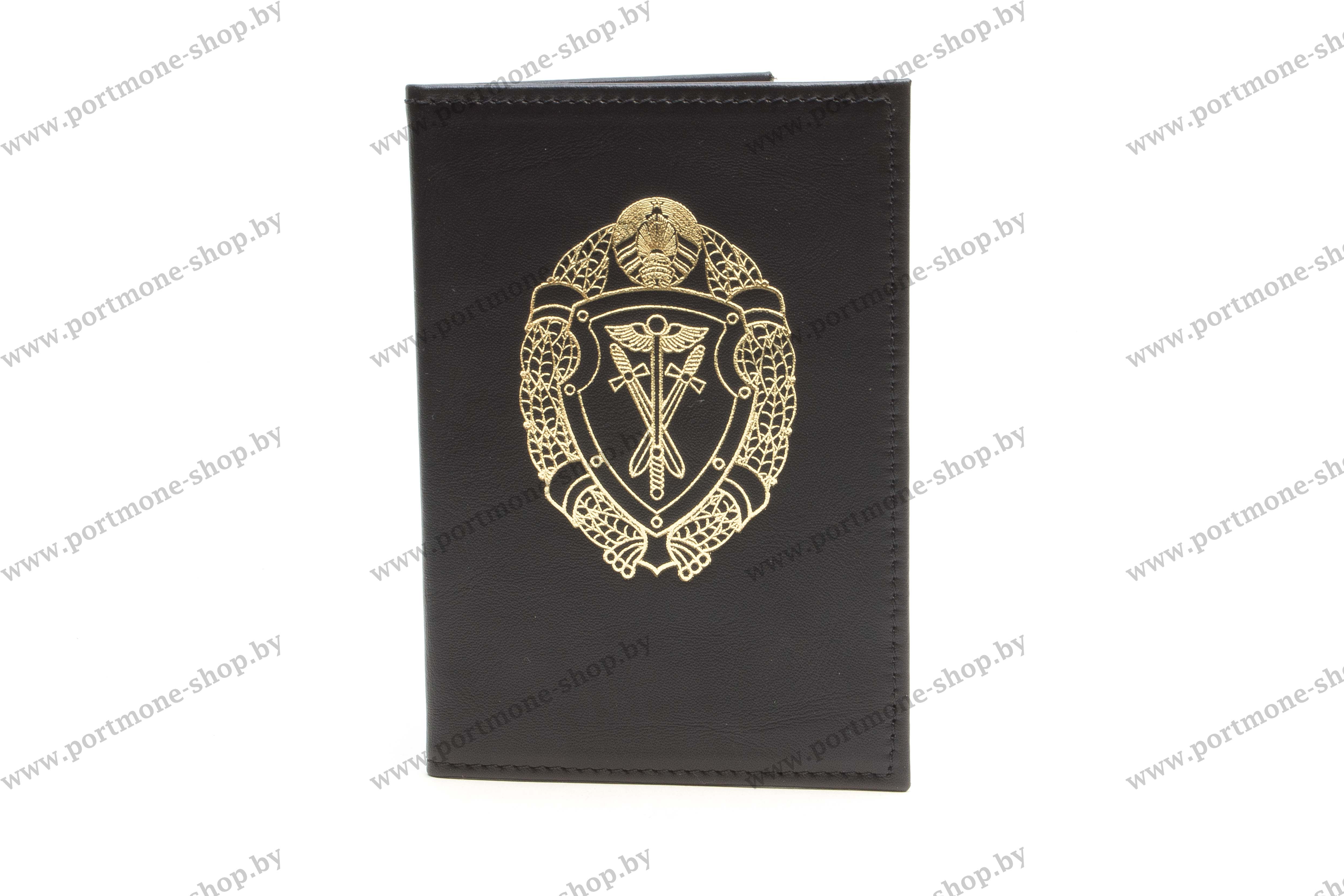Недорогой вариант сувенирной обложки для автодокументов и паспорта. На лицевой стороне золотом вытеснена эмблема ДФР КГК Республики Беларусь.