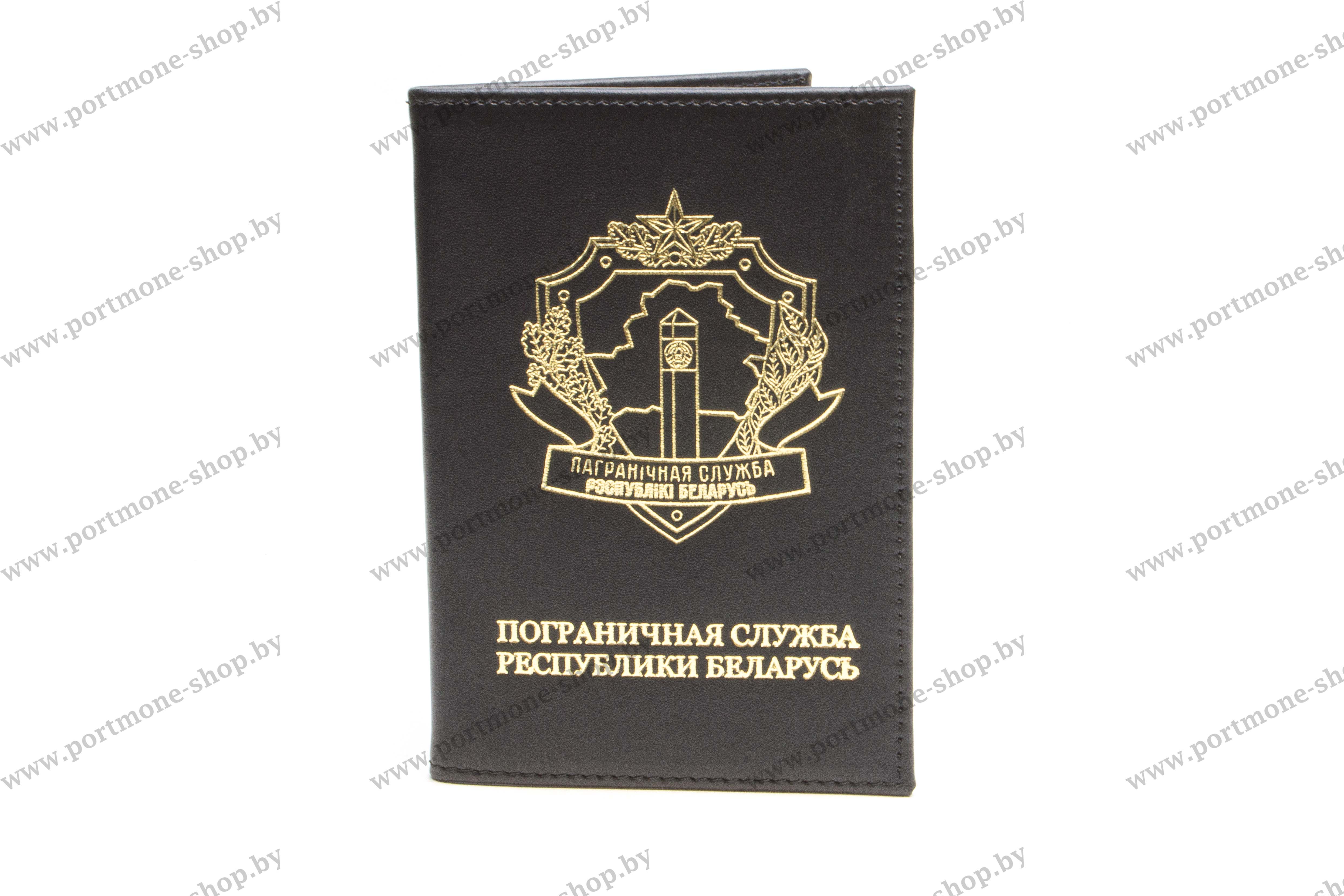 На лицевой стороне нанесено золотое тиснение: эмблема Пограничной службы и надпись "Пограничная служба Республики Беларусь"