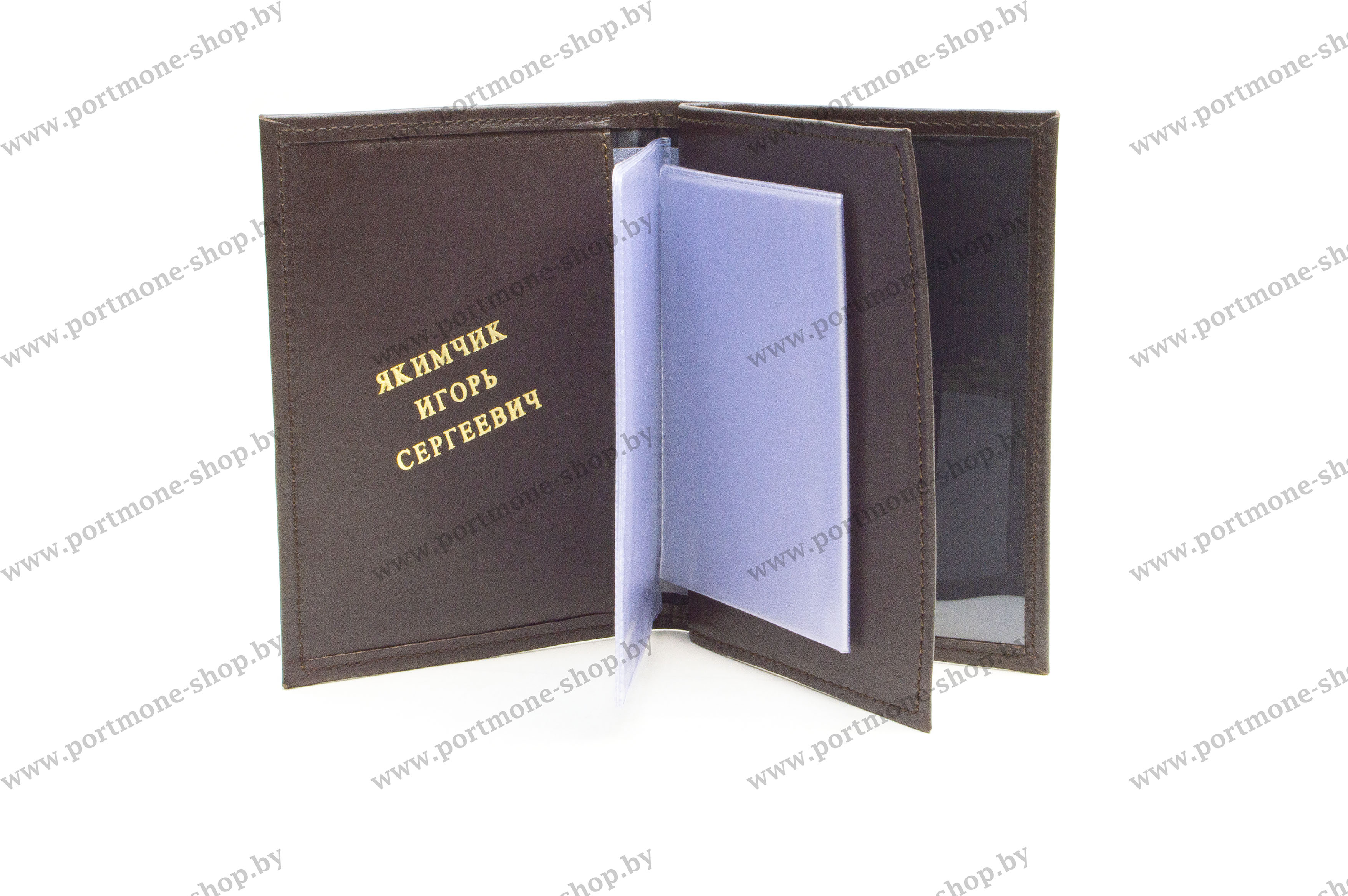 Обложка из натуральной кожи собственного производства с прозрачной пластиковой вставкой для автодокументов.