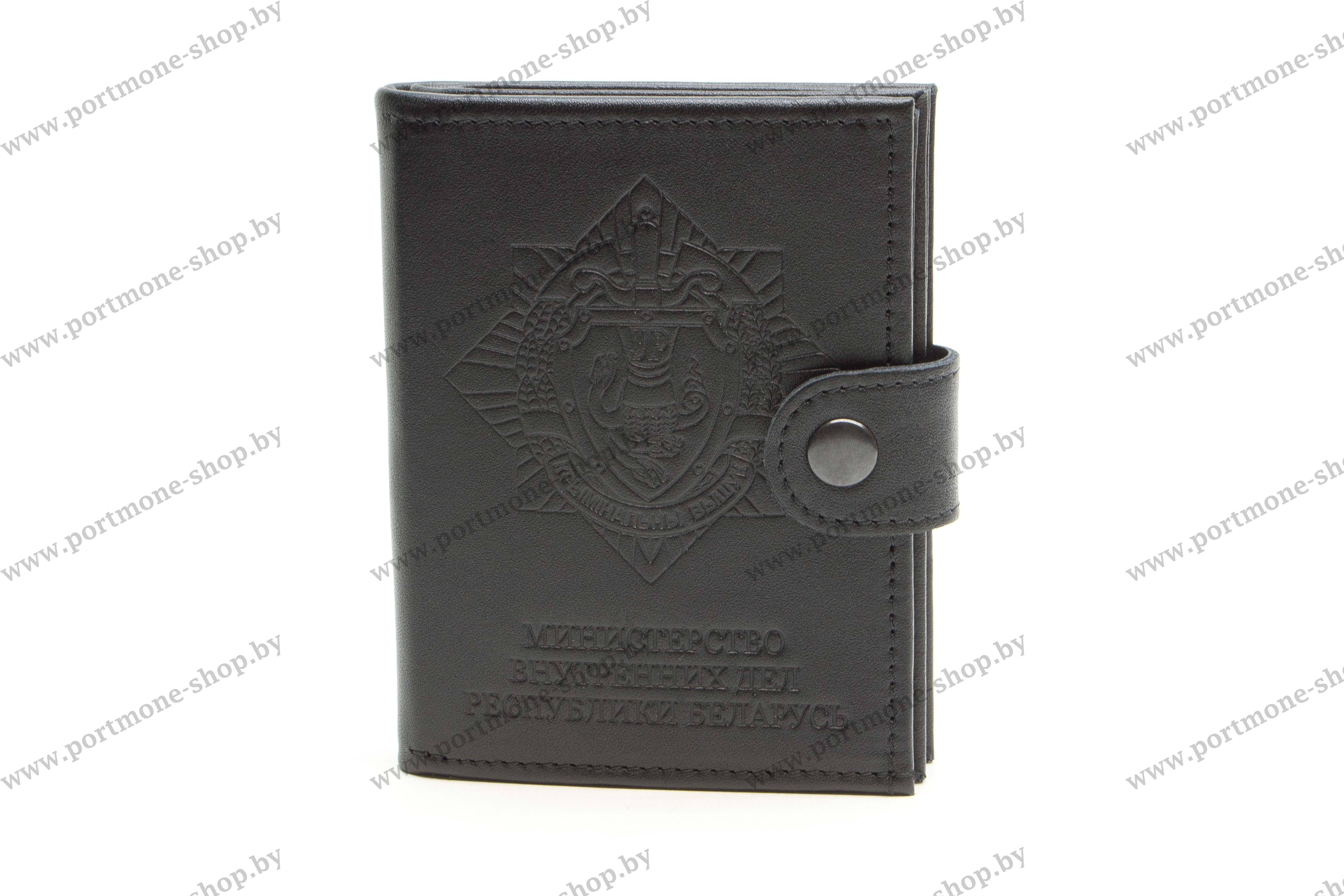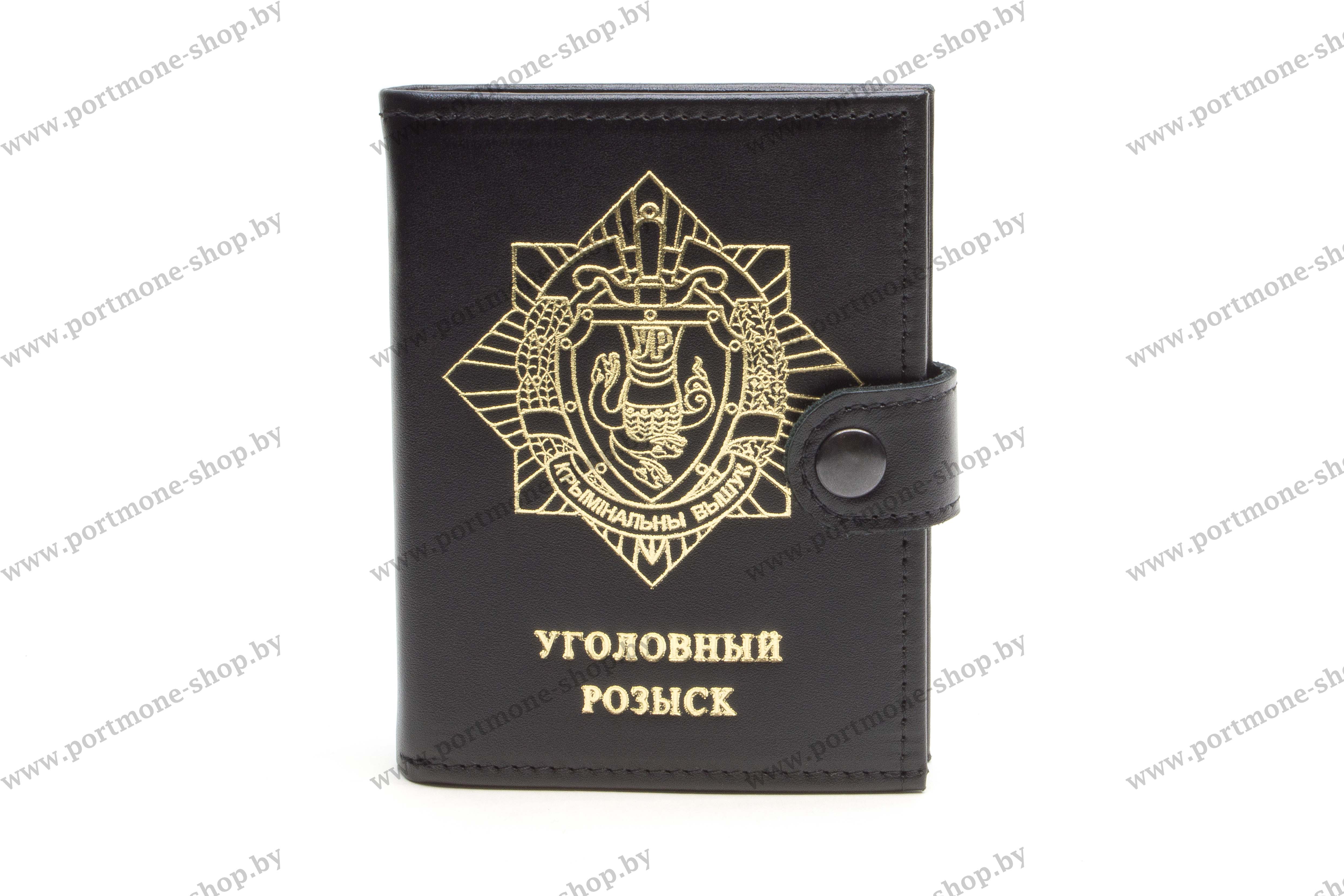 Обложка с пятью прозрачными отделениями по центру. На первом либо последнем развороте размещается откидной отсек для служебного удостоверения МВД нового образца. Оснащена хлястиком, предотвращающим случайное раскрытие. Сделать заказ на обложку для документов сотрудников уголовного розыска КМ МВД Республики Беларусь с отсеком для удостоверения можно на нашем сайте portmone-shop.by. Самовывоз с производства в Минске. Возможна отправка товара по Беларуси почтой. Под заказ возможно изготовление с другими тиснениями (см картинки к товару), а также установка знаков заказчика.