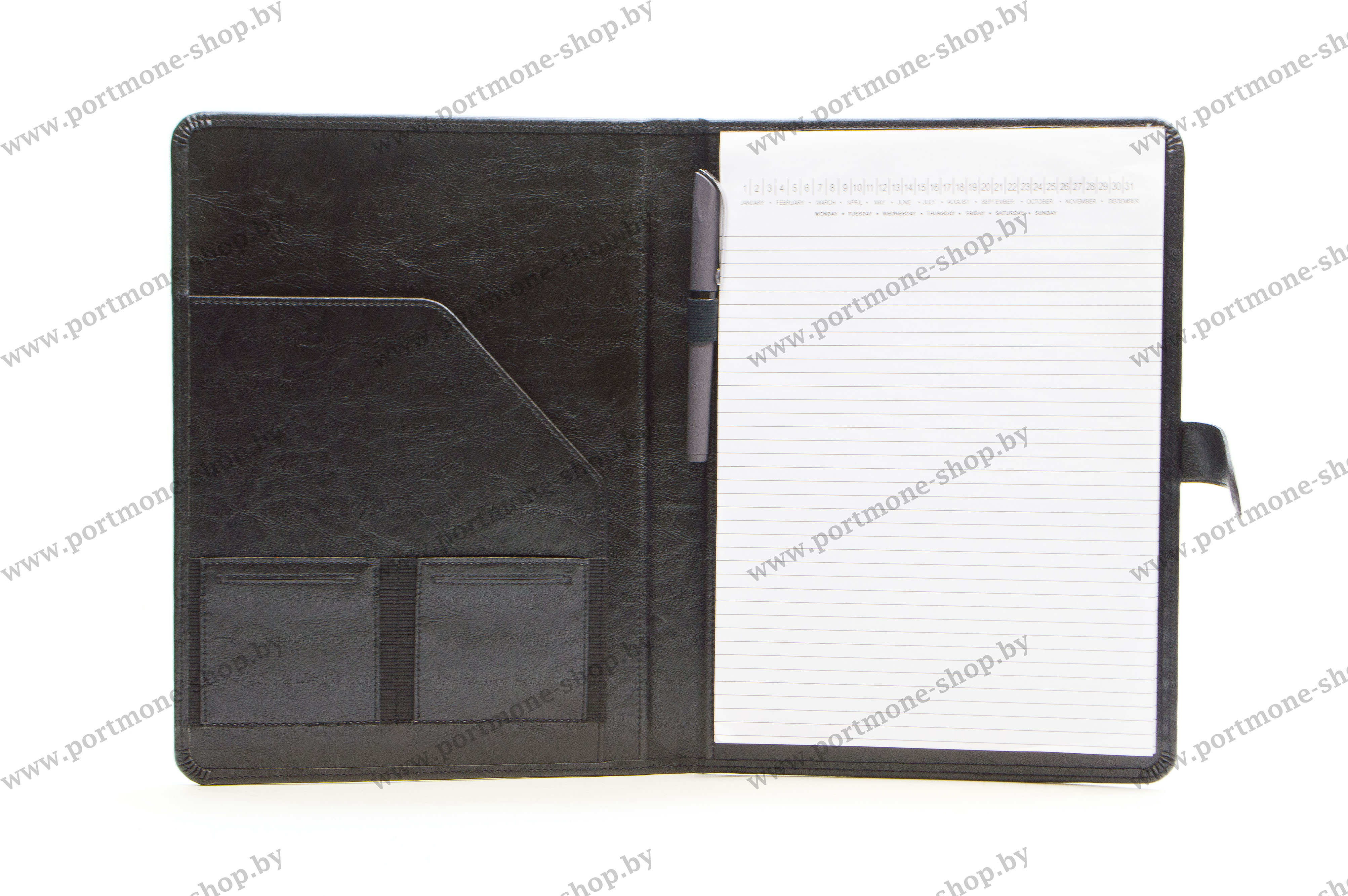 Папка А4 с прорезью под блокнот, карманами и петелькой для ручки с закрытием на магнит.