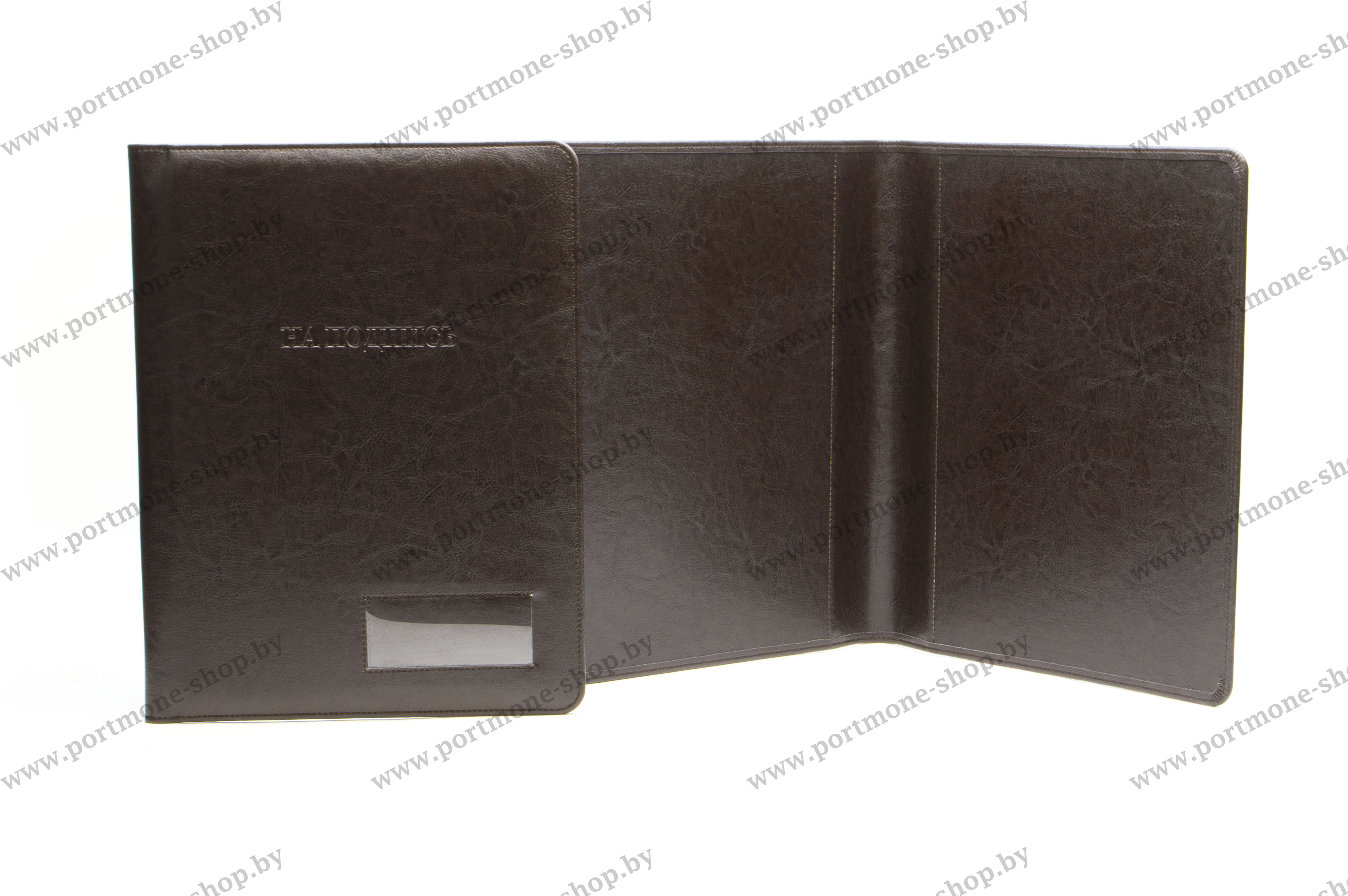 Папка А4 "На подпись" с прозрачным окошком из искусственной кожи