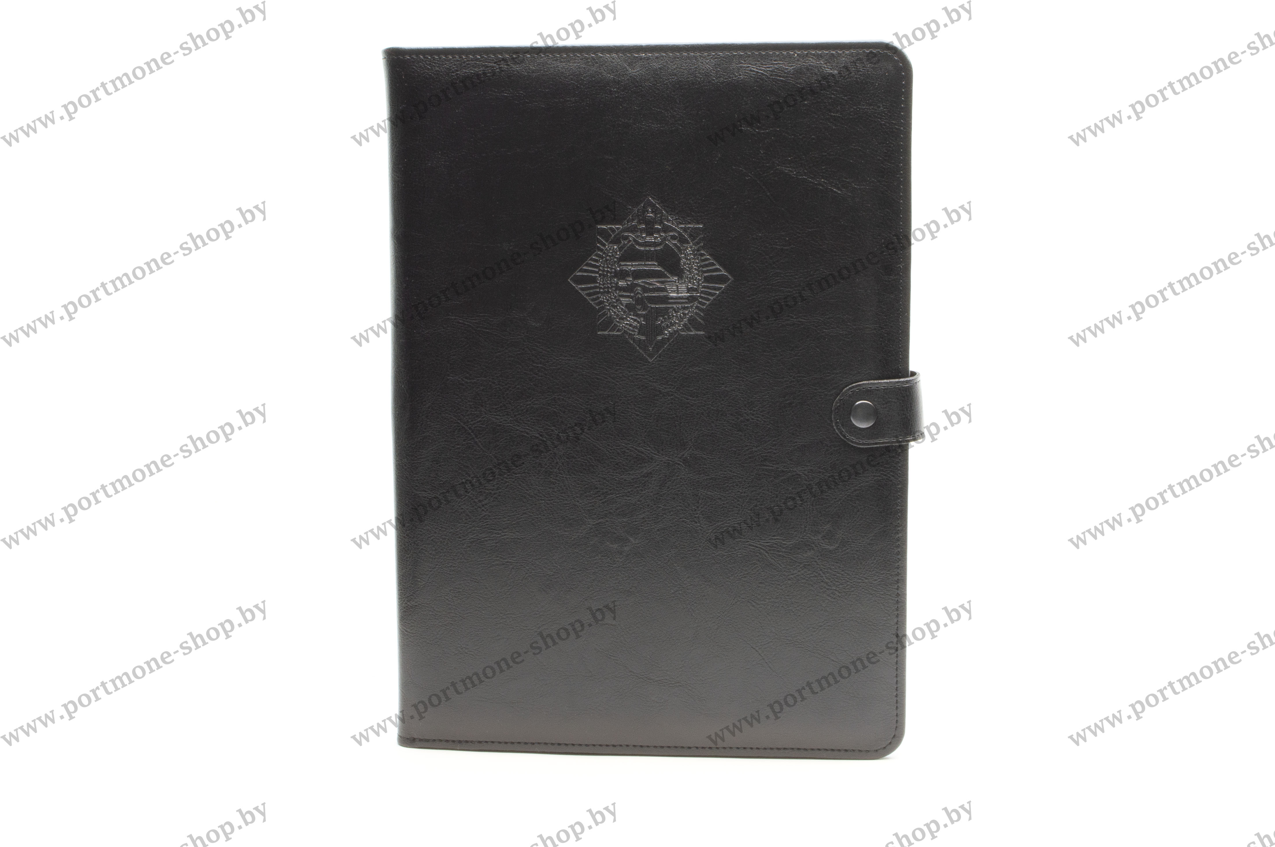 Папка для документов формата А4 с закрытием на кнопку. Она включает в себя прижимной механизм, объемный карман для документов на кнопке, что препятствует из выпадению и длинный узкий прозрачный карман для заметок. Материал искусственная кожа. Данная модель, как и другие изделия, может быть выполнена из натуральной кожи, а так же в другом цвете.