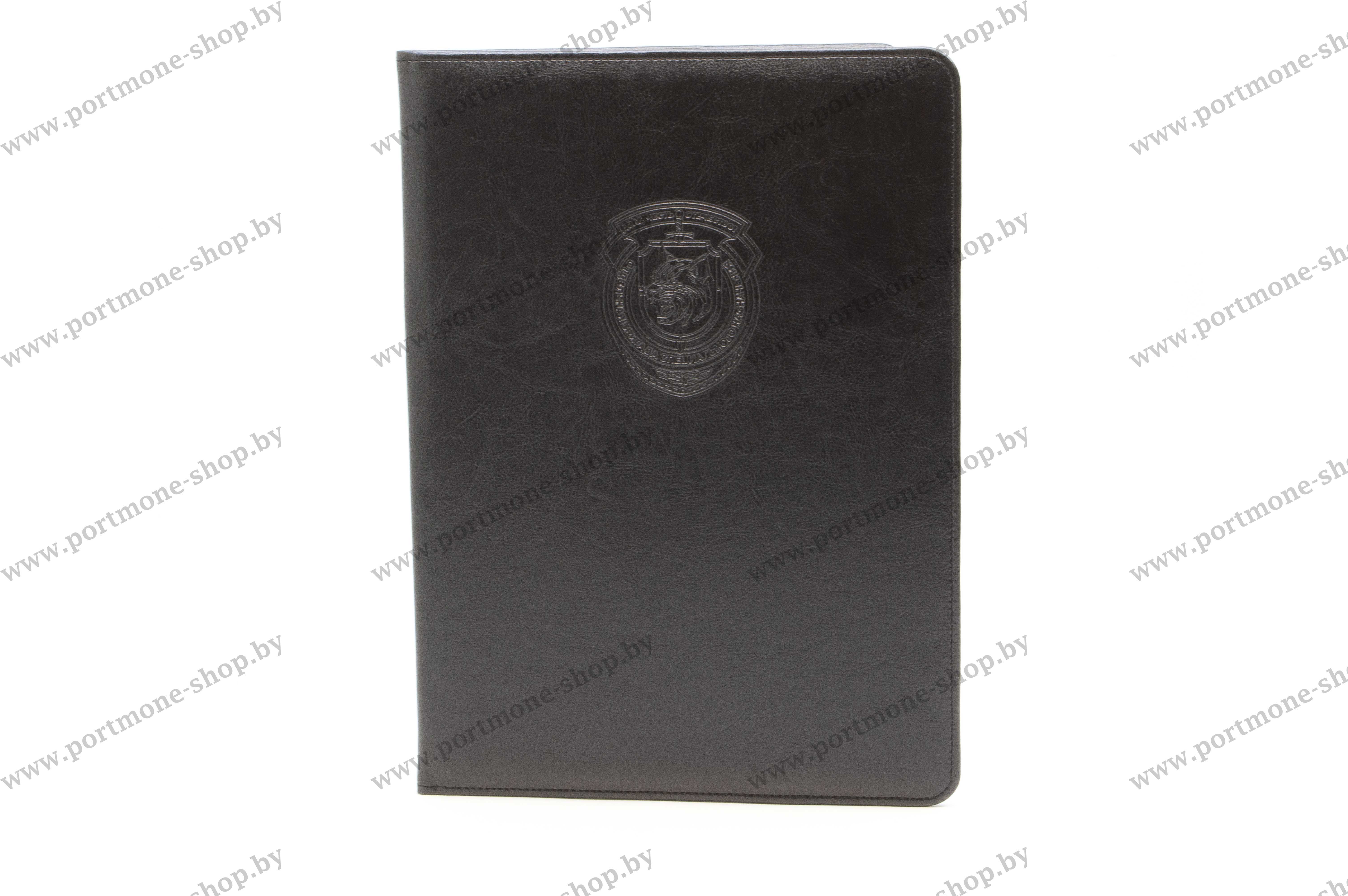 Папка с эмблемой Спецназа Республики Беларусь в/ч/ 3214 формата А4 из искусственной кожи. Папка может изготавливаться в любом цвете. Такая же модель может быть из натуральной кожи с золотым/серебряным/бесцветным тиснением.