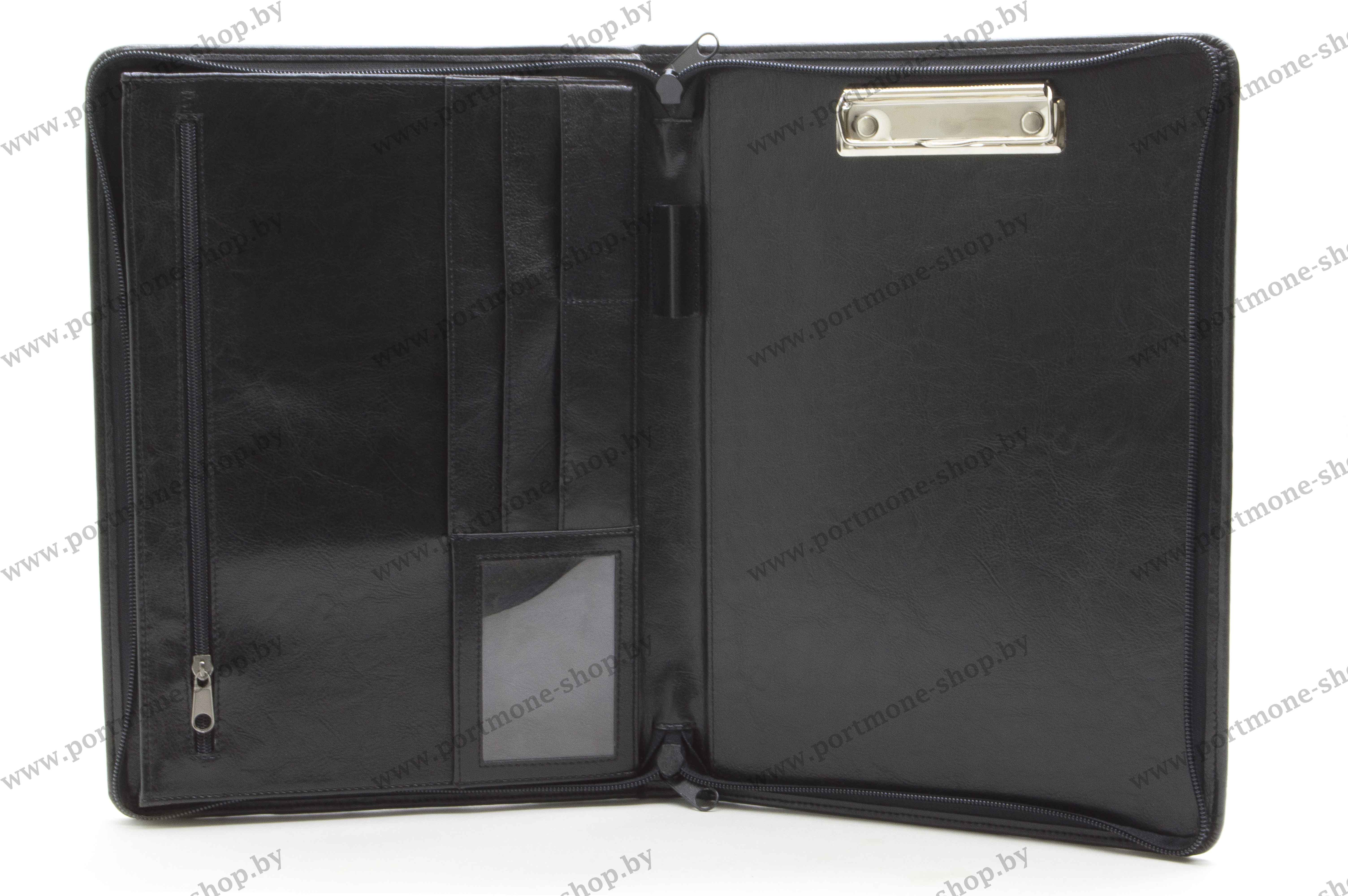 Папка формата А4 из искусственной кожи с тисненой эмблемой подразделений специального назначения МВД РБ. Внутри данной модели располагаются один большой объемный карман А4, широкий плоский карман на замке, узкие карманы и слоты для карточек, а так же прижимной механизм для документов. Папка закрывается на замок.