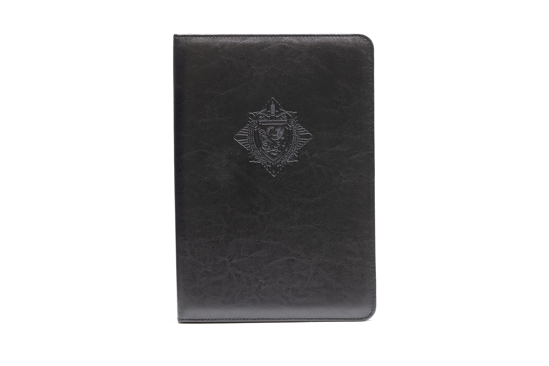 Папка с эмблемой Управления по наркоконтролю и противодействию торговле людьми Республики Беларусь предназначена для бумаг формата А4 и закрывается на молнию. Внутри два объемных кармана для бумаг, в который легко помещается толстая папка с документами, ежедневник и пр. Многочисленные карманы позволят хранить в доступности заметки, визитки, пропуска и т.п.