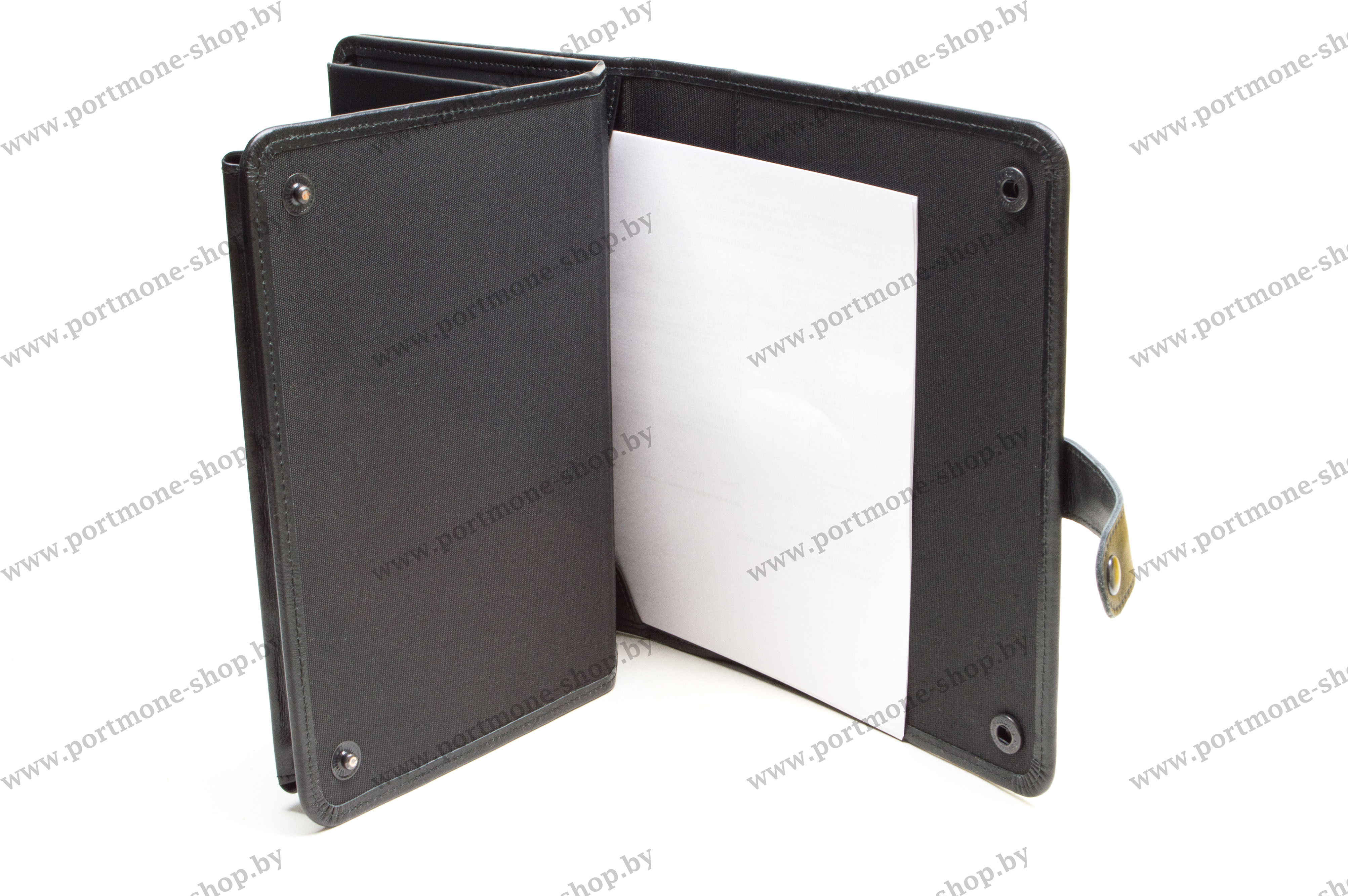 Стороны папки-барсетки фиксируются хлястиком на кнопке.