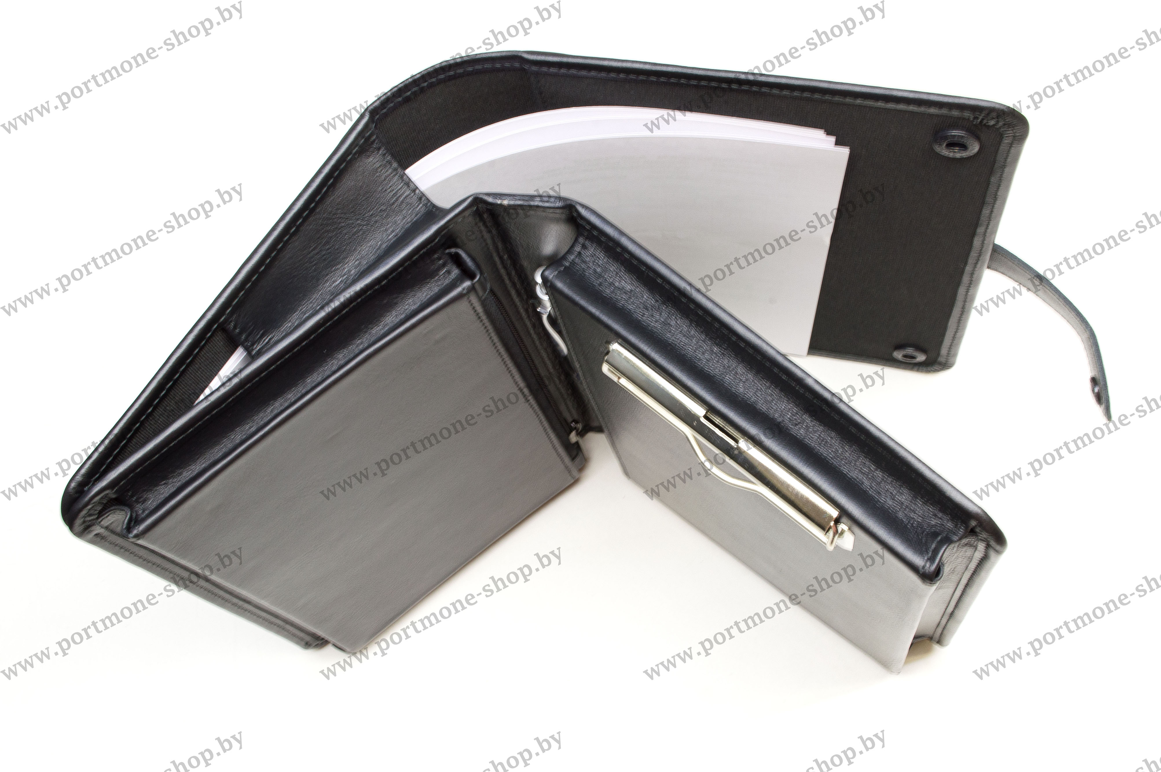 Папка-барсетка А5 с двойным корпусом. Внутри имеются два объемных кармана для формата А5 (на замке и без), прижимной механизм. В карман между внутренним и внешним корпусом помещаются документы формата А4.