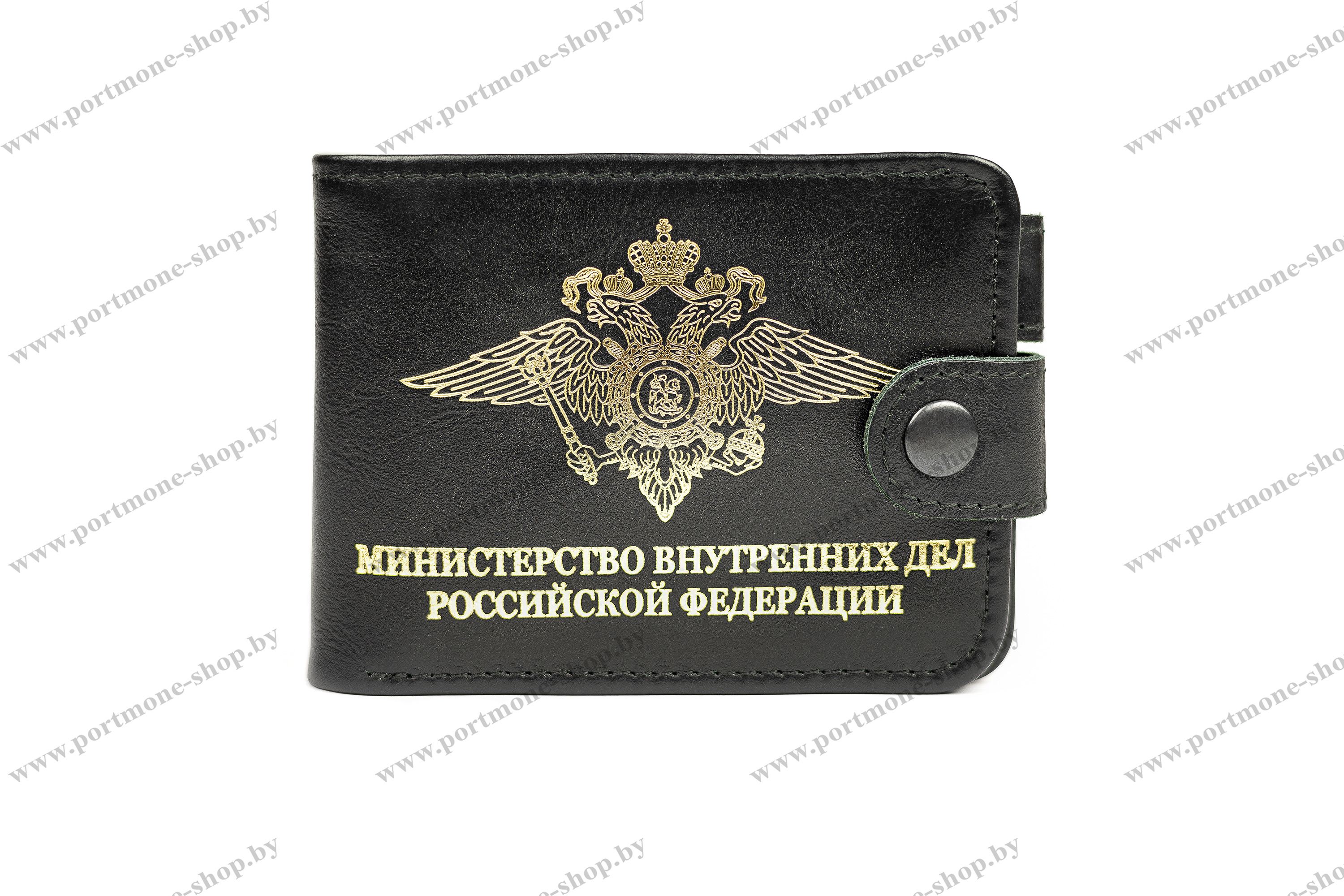 Портмоне для денег и документов с отсеком под служебное удостоверение размером 65*98мм (в сложенном состоянии) с симводикой Министерства внутренних дел Российской Федерации.