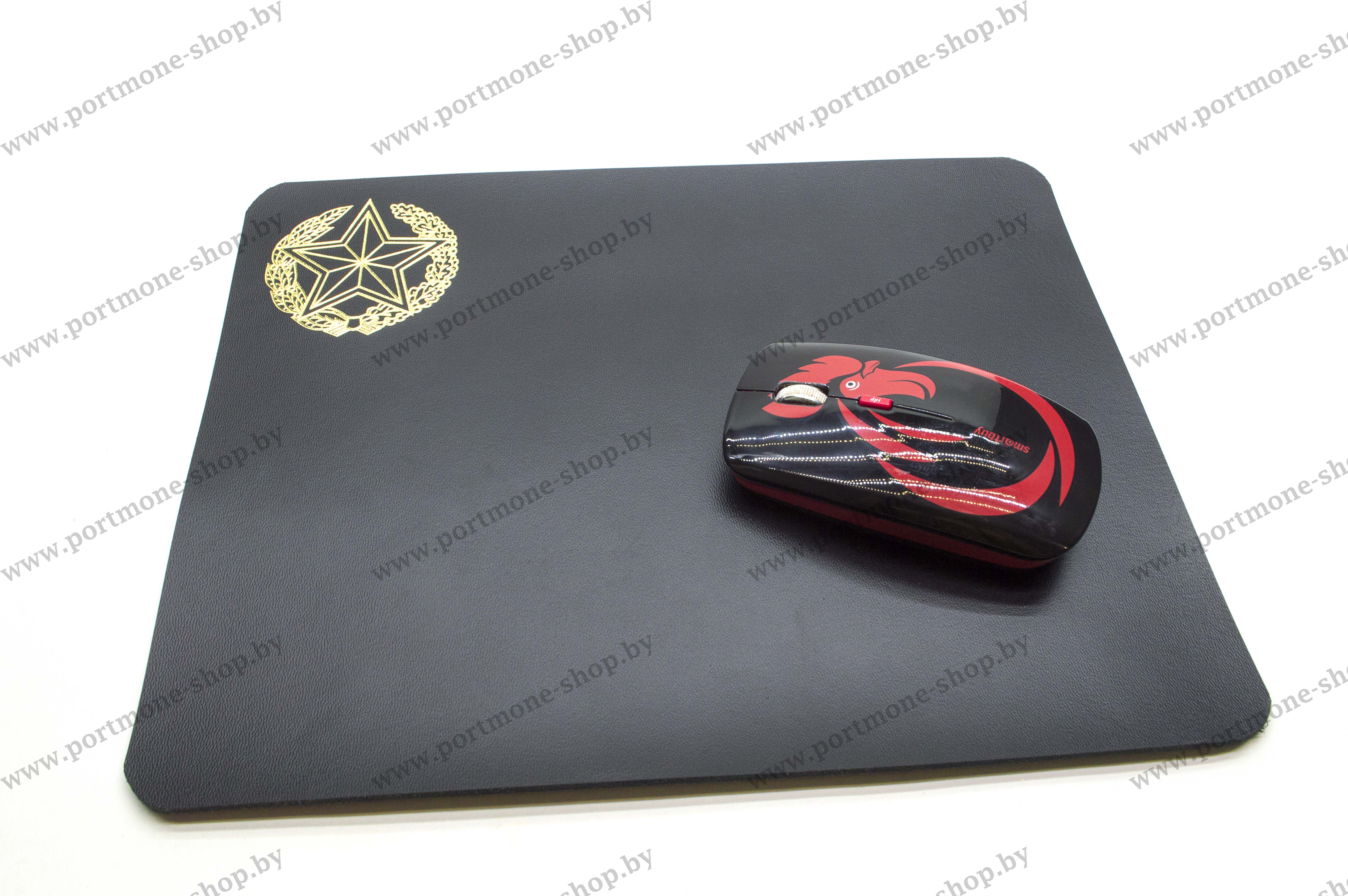 Коврик для мыши из толстой натуральной кожи с возможностью нанесения эмблемы имеющихся структур.