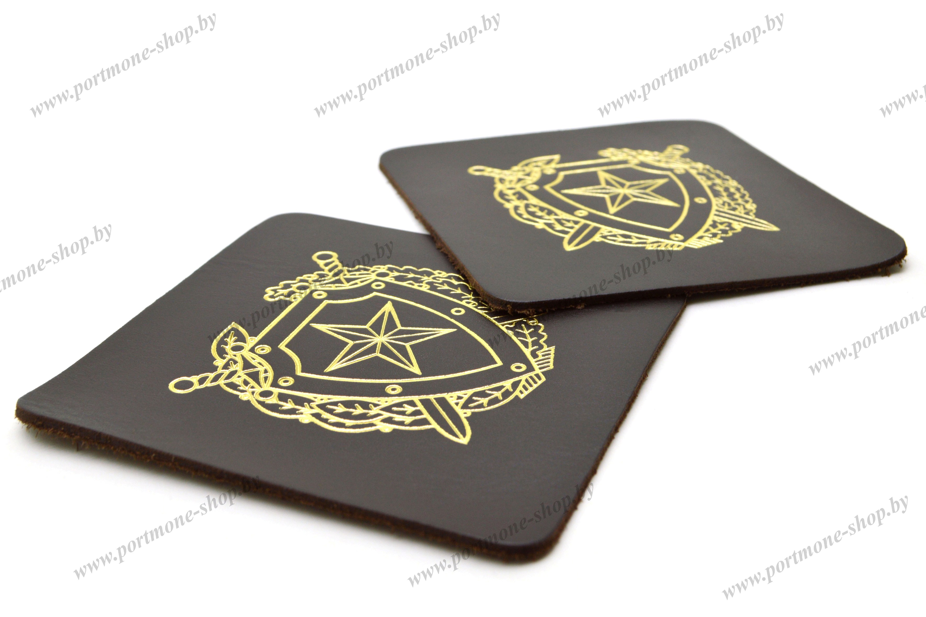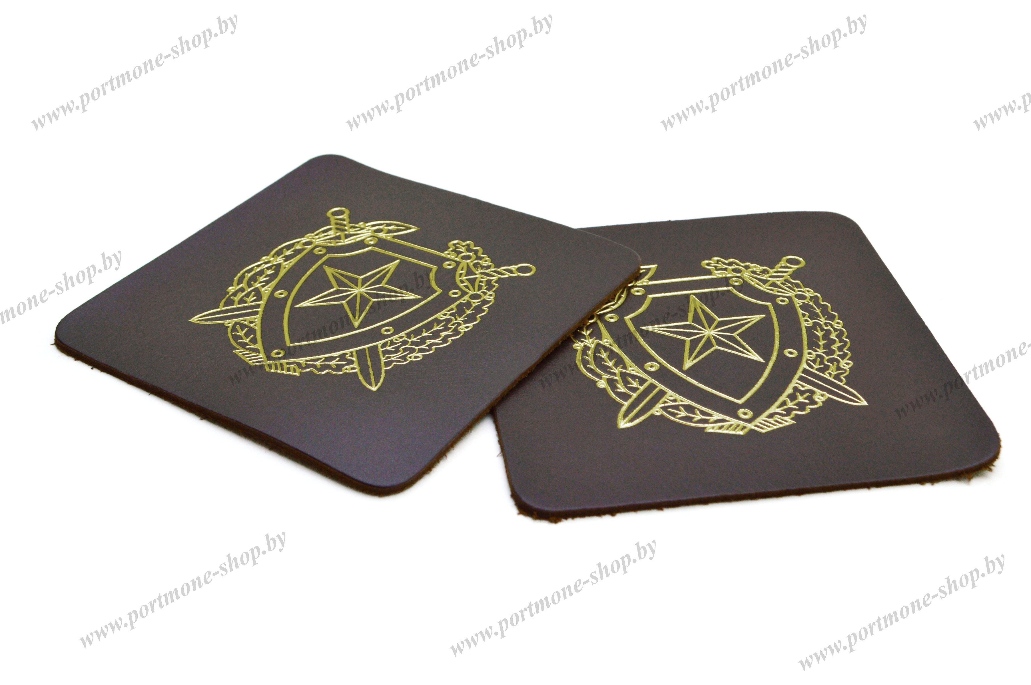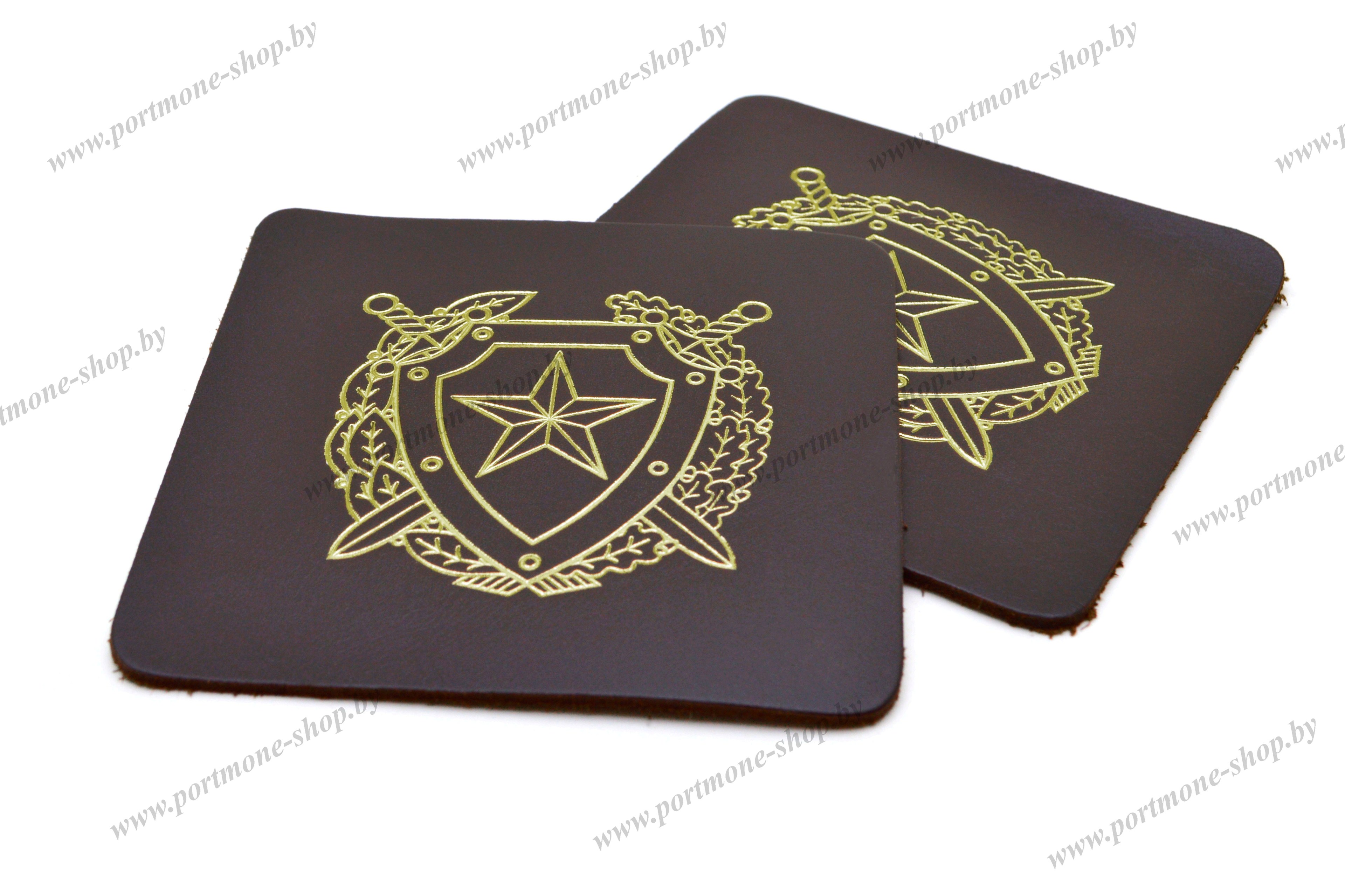 Подстаканники из натуральной кожи с тисненой эмблемой Внутренних войск Республики Беларусь