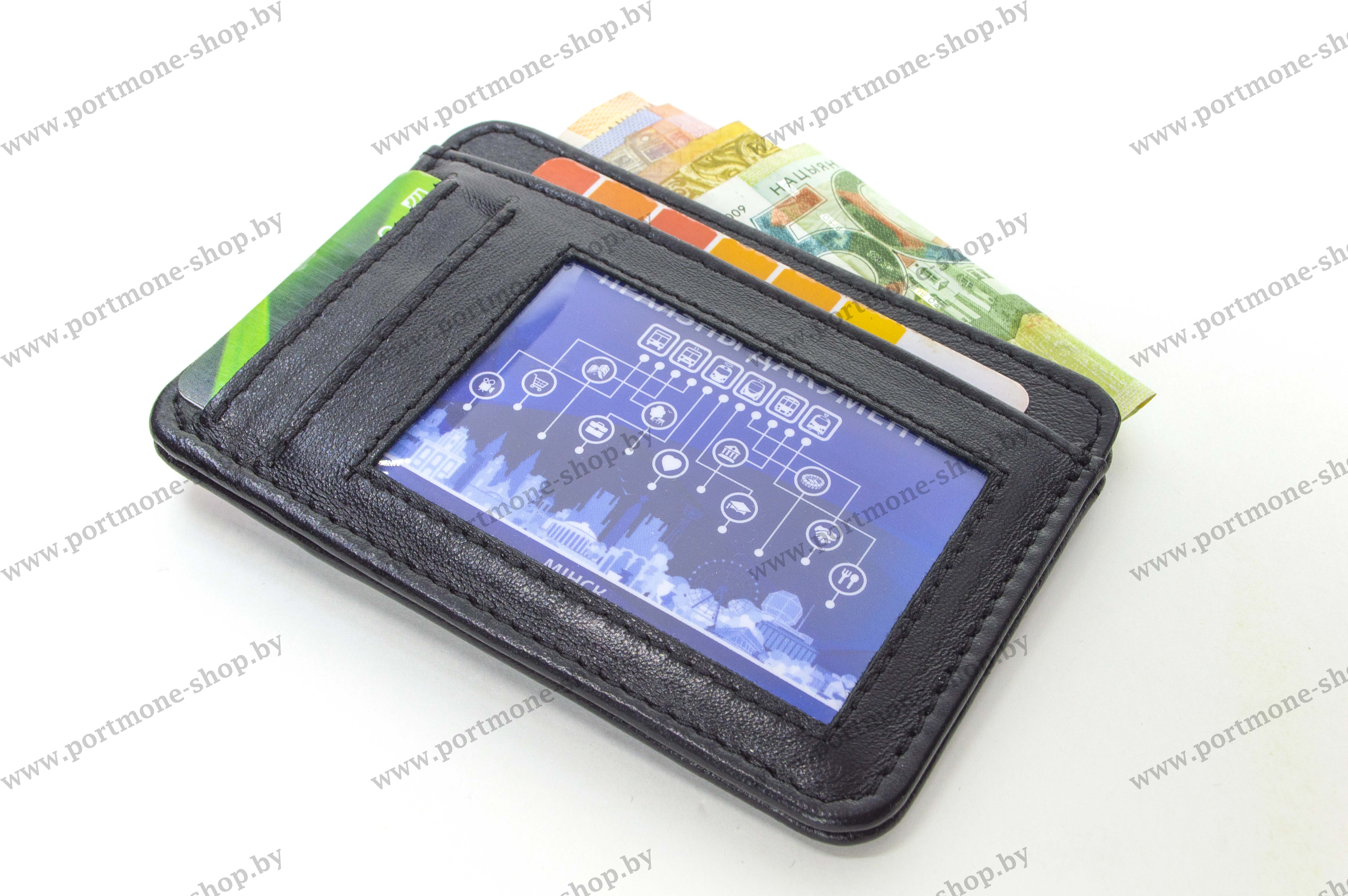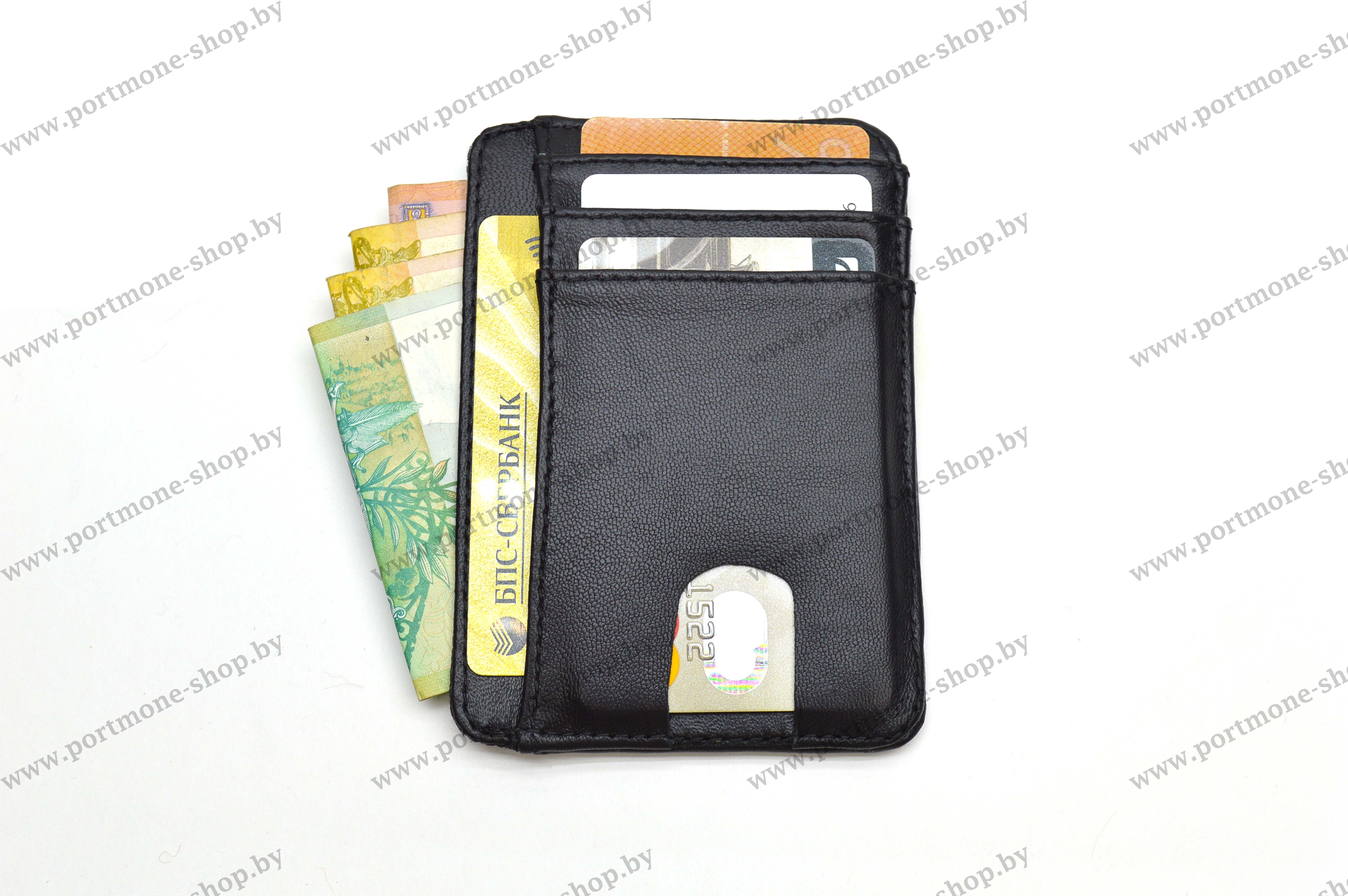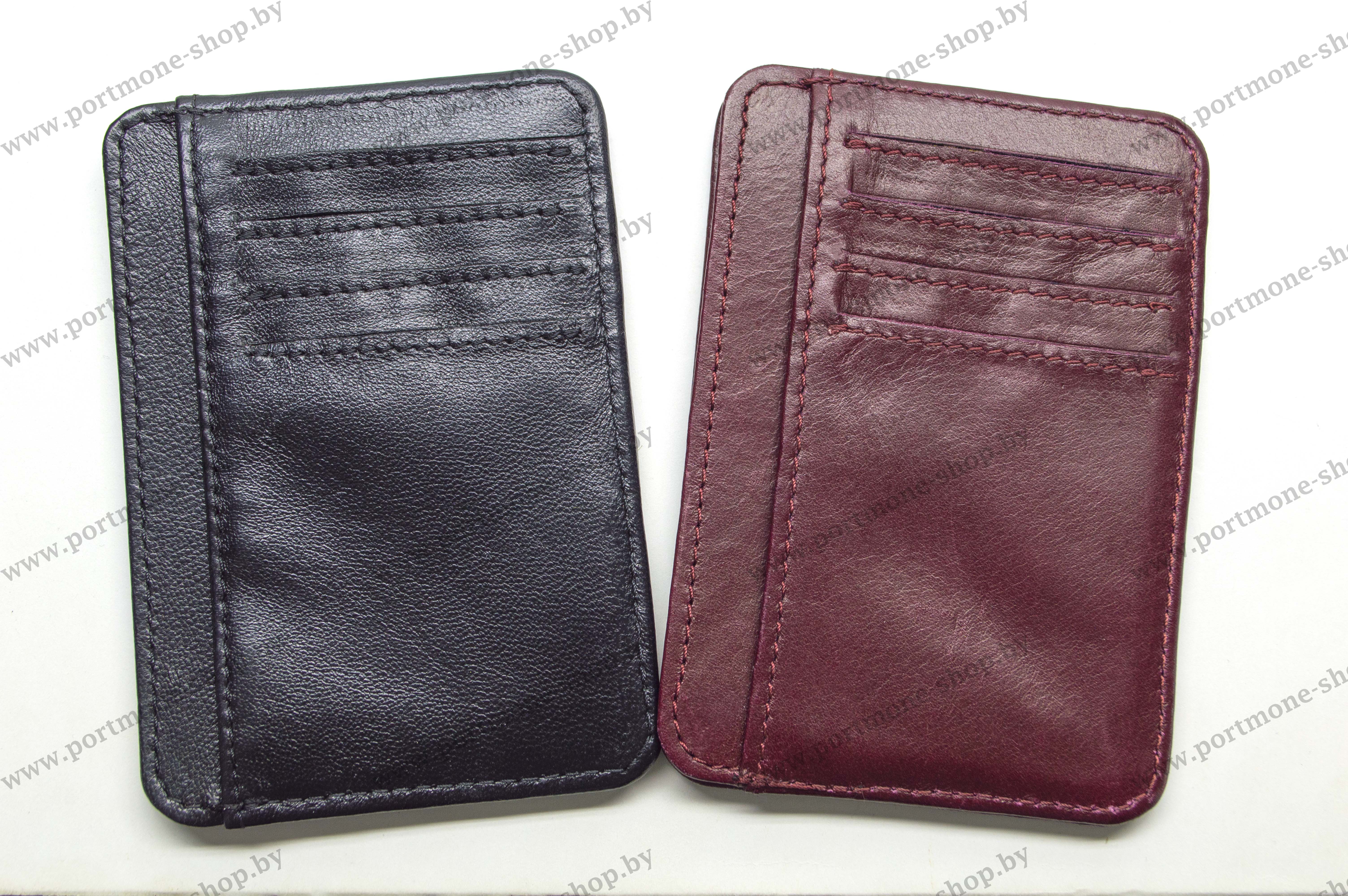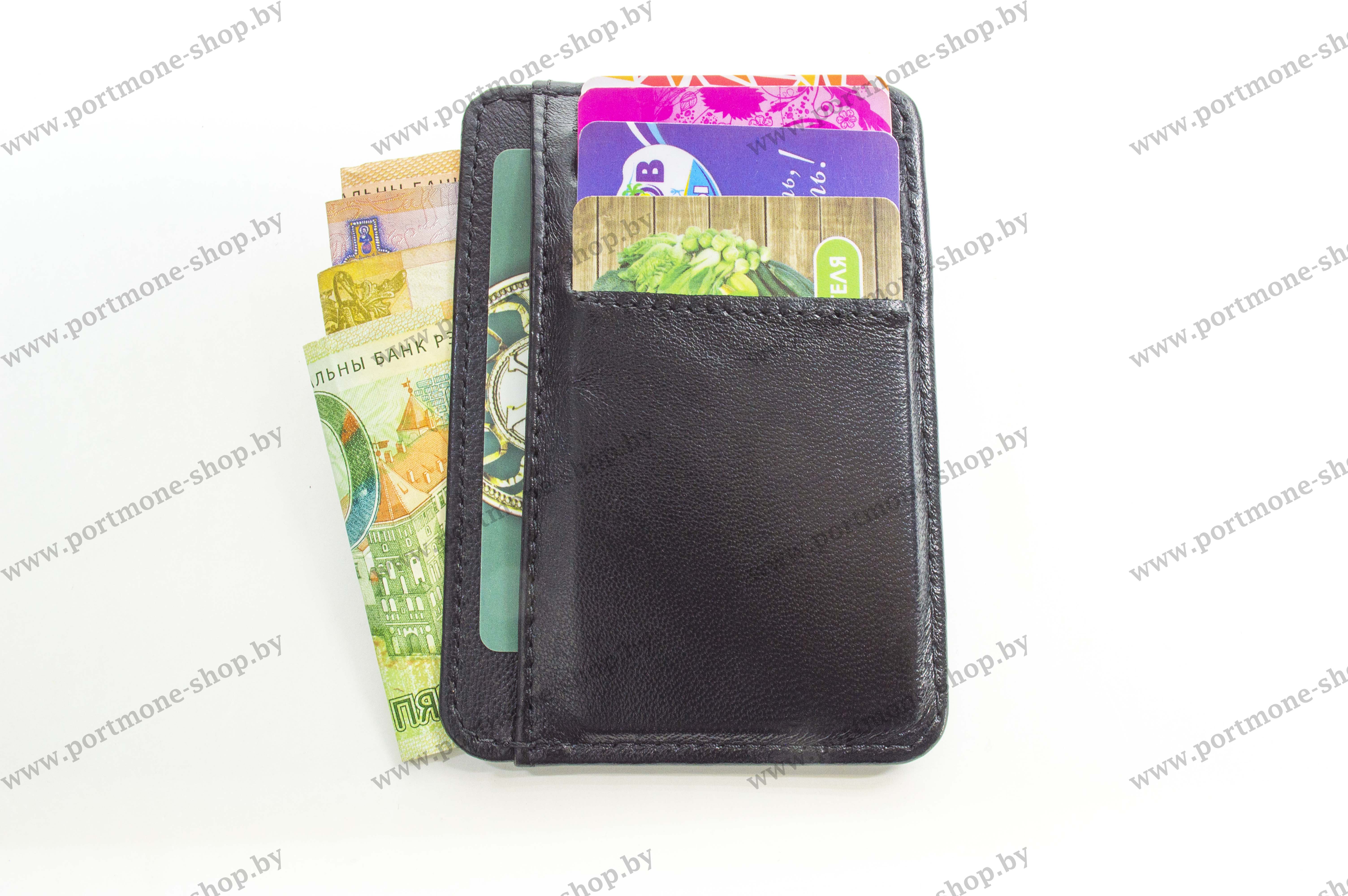 Двусторонний картхолдер из натуральной кожи с карманом по-середине.